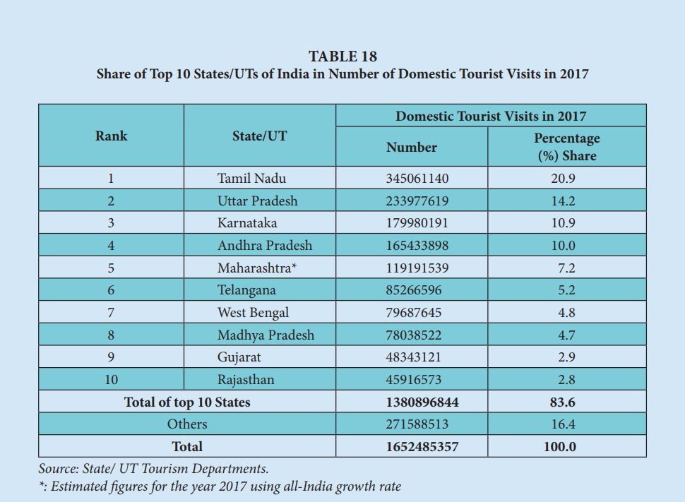 More than 10 million remote travelers touched base in India in 2017 contrasted with 8.89 million of every 2016, speaking to a development of 15.6%. Household visitor visits to all states and association regions numbered 1,036.35 million of every 2012, an expansion of 16.5% from 2011. In 2014, Tamil Nadu, Maharashtra, and Uttar Pradesh were the most well-known states for vacationers. Delhi, Mumbai, Chennai, Agra, and Jaipur were the five most visited urban communities of India by remote visitors amid the year 2015. Around the world, Delhi is positioned 28th by the number of remote vacationer entries, while Mumbai is positioned 30th, Chennai 43rd, Agra 45th, Jaipur 52nd, and Kolkata 90th.