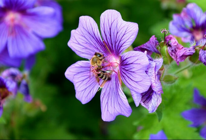 Have you ever watched bees gathering food? They fly from lower to flower collecting nectar, which is a sweet and sugary fluid. They also collect pollen. Both nectar and pollen are used for food, but it is the nectar that the bees turn into honey Some bees collect nectar from sunflowers, others go to buttercups. The bee sucks the nectar into a special honey stomach. The pollen is picked up on the hair of the body