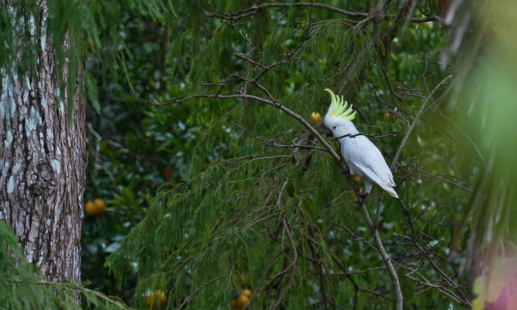 The white parrot has a beautiful crest