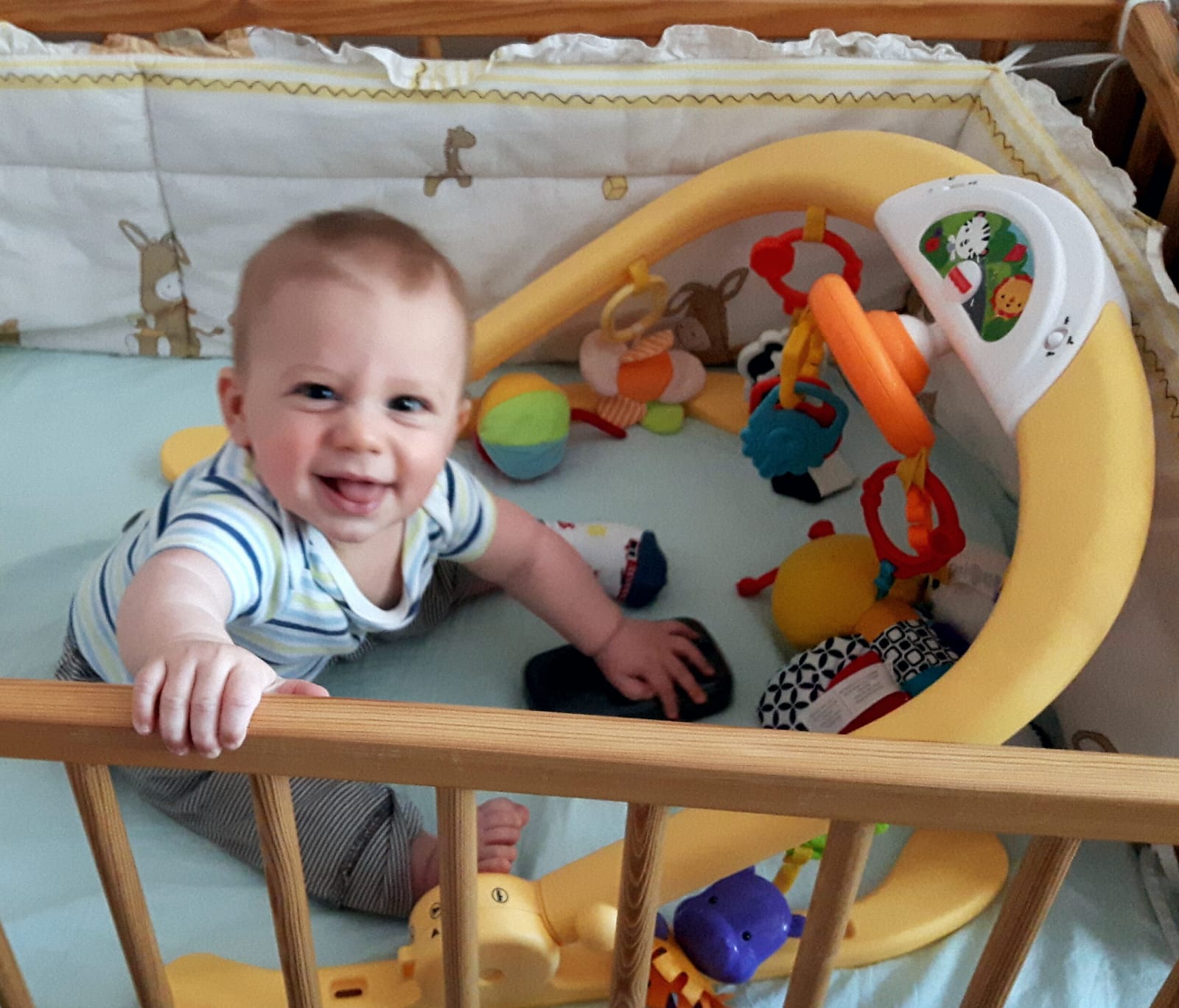 I stayed with him for 3 days. We were at my cousin's house. She has many children (five) and Adam liked them very much. He smiled at them.