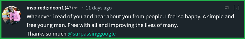 @surpassinggoogle my mentor, yes he's a mentor to me cos I always aspire to go as far as he is going here on Steemit, to affect so much lives and yet remain so humble.