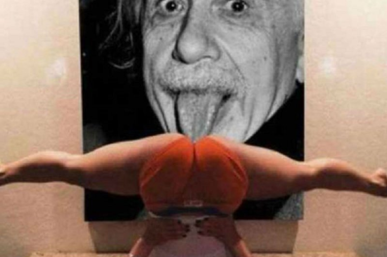 The framing of a picture can be extremely important in relaying the right message. This picture looks like this Einstein fan is also a fan of yoga.