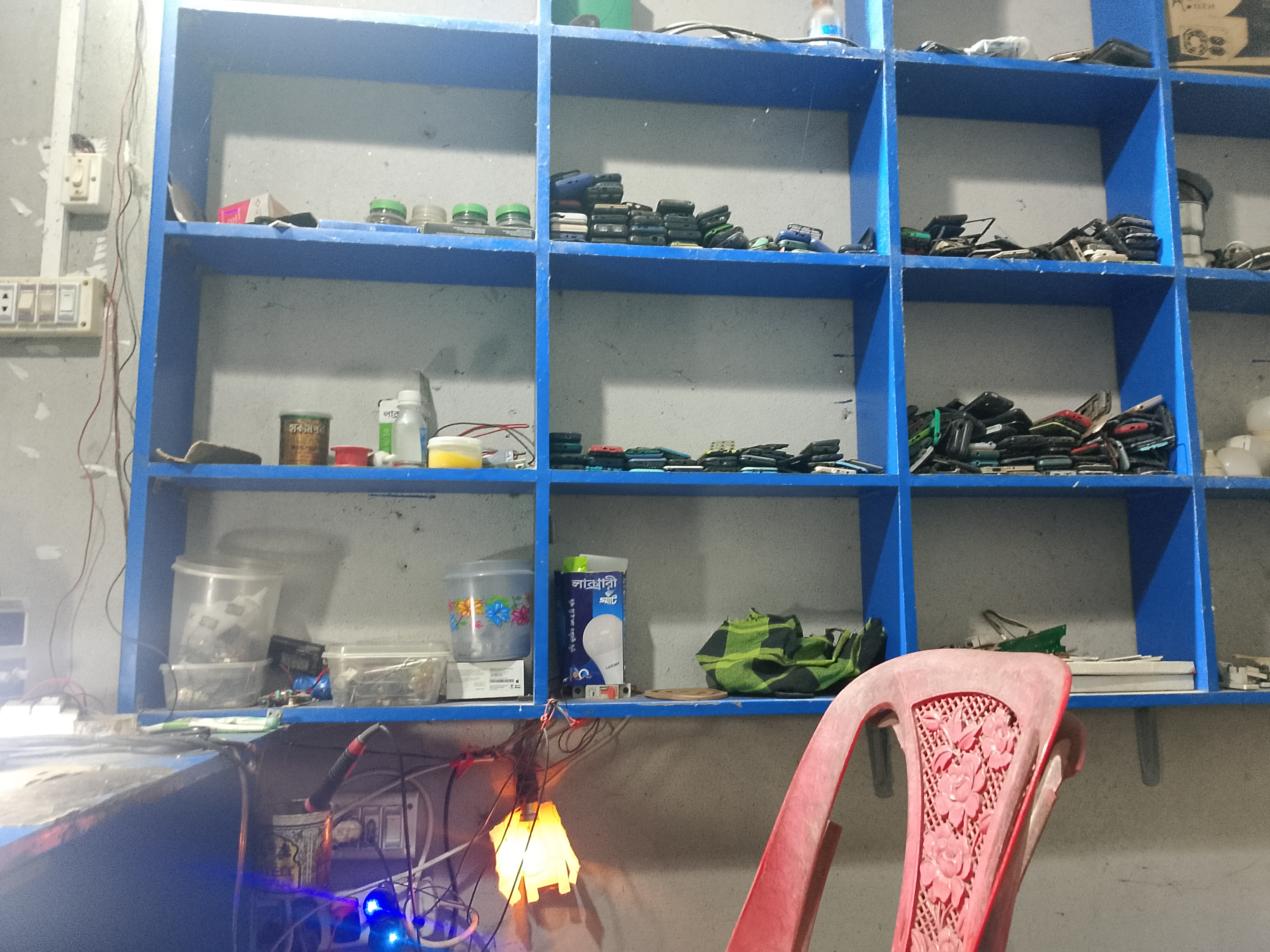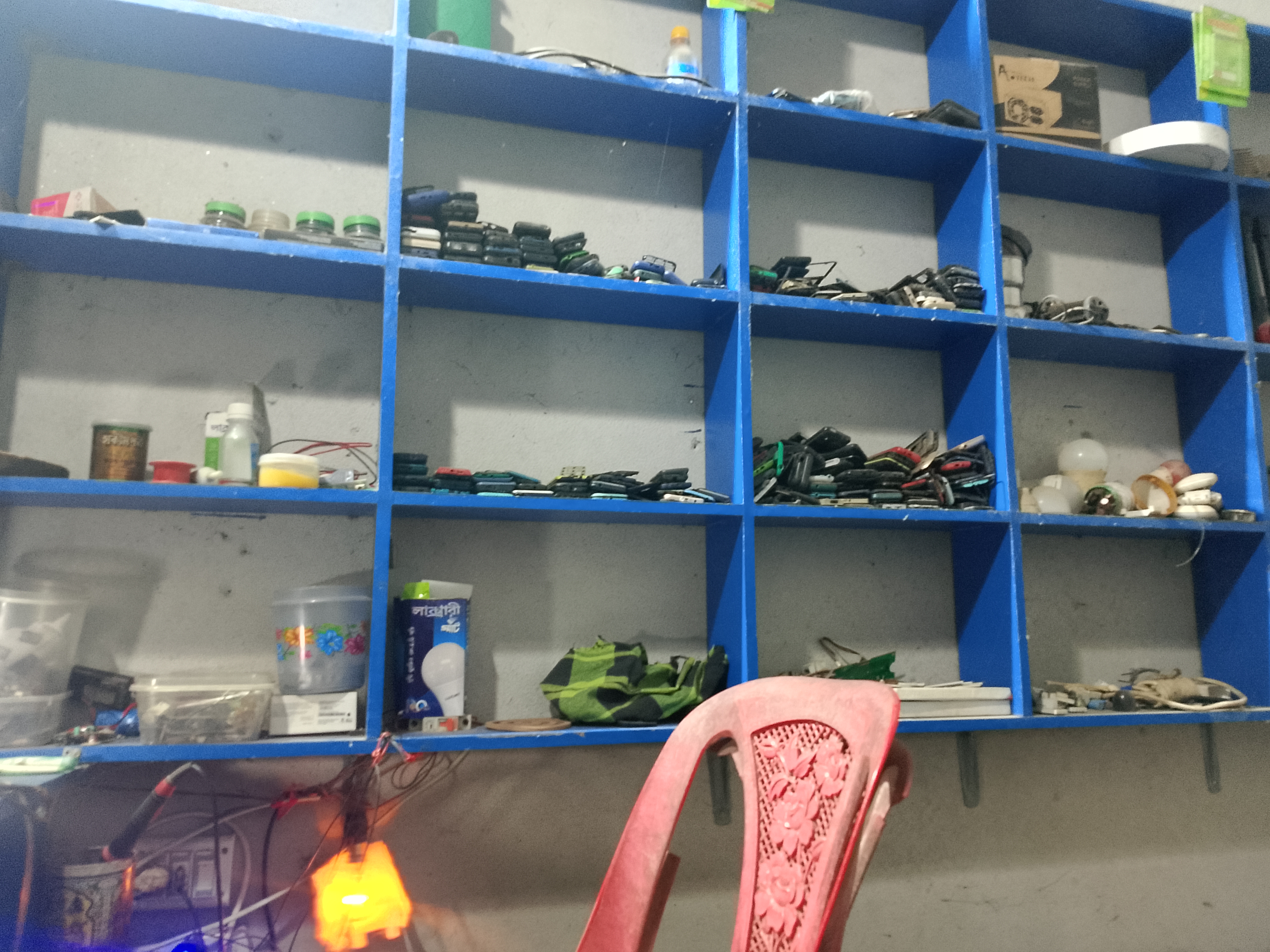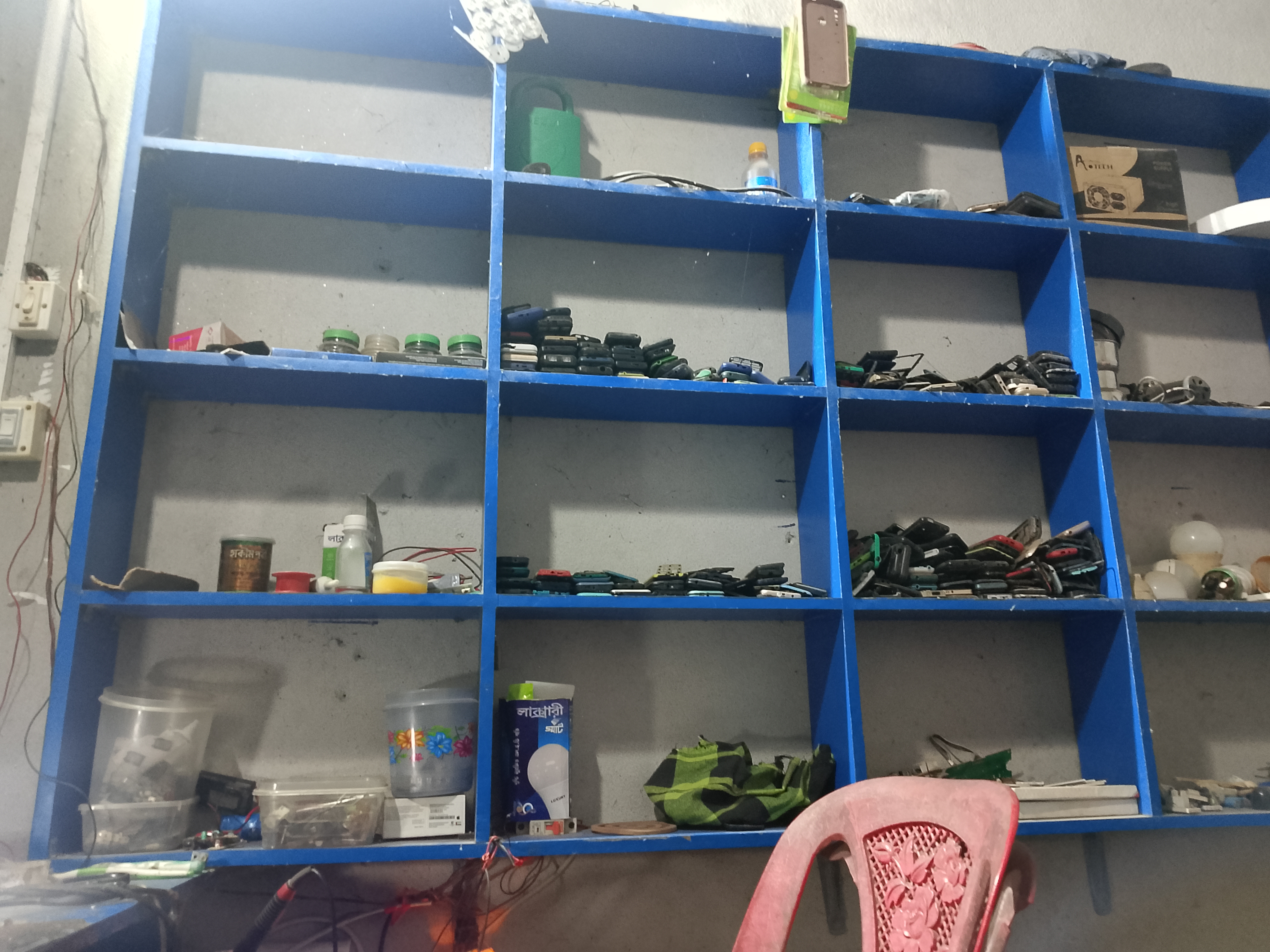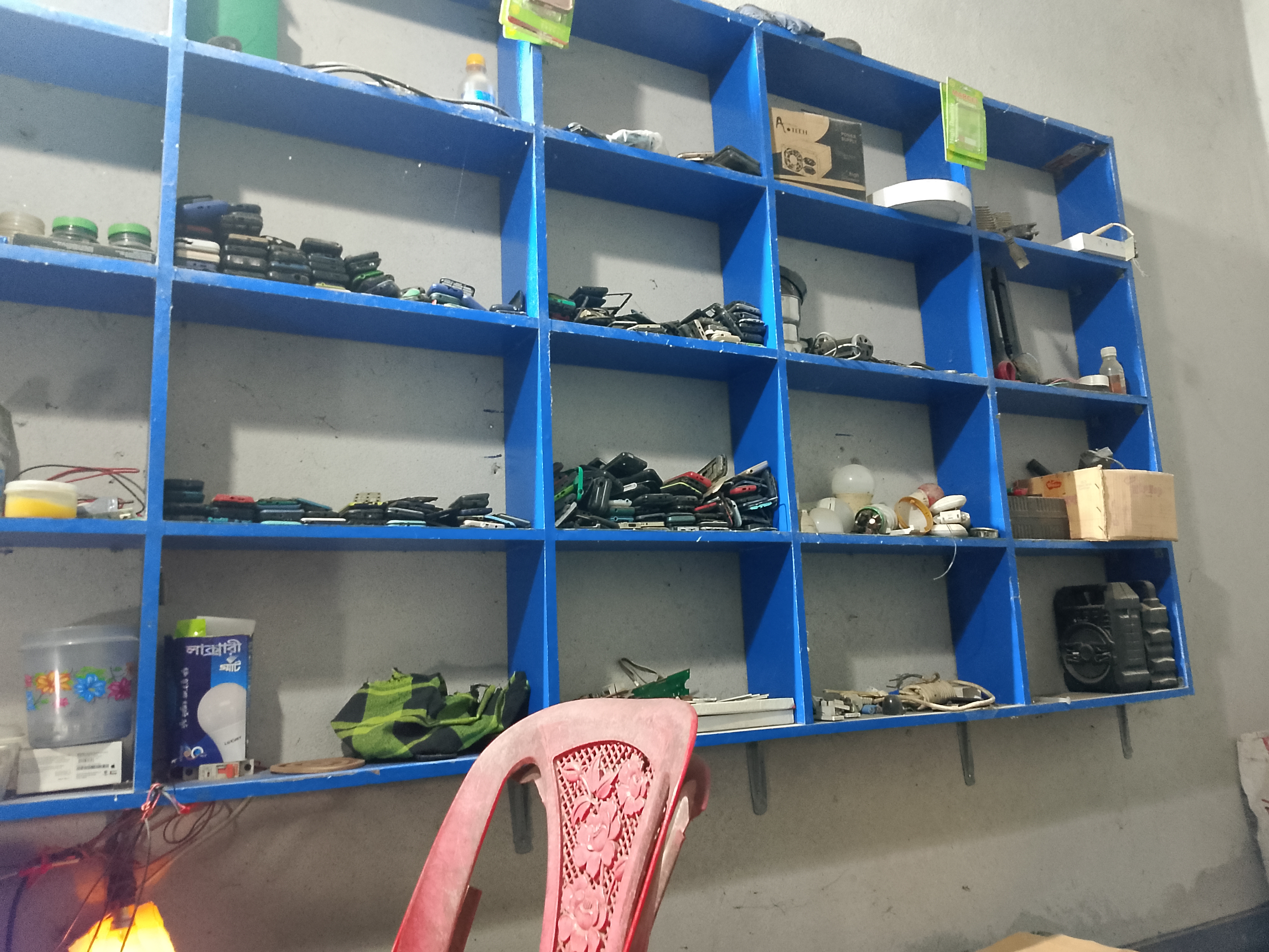 An electronics repair shop—various types of mobile phones are repaired here, and different kinds of work are done. I had given my light there for repair, so I went there to collect it. The work is done very nicely there. Light repairs and various mobile repairs are done here.