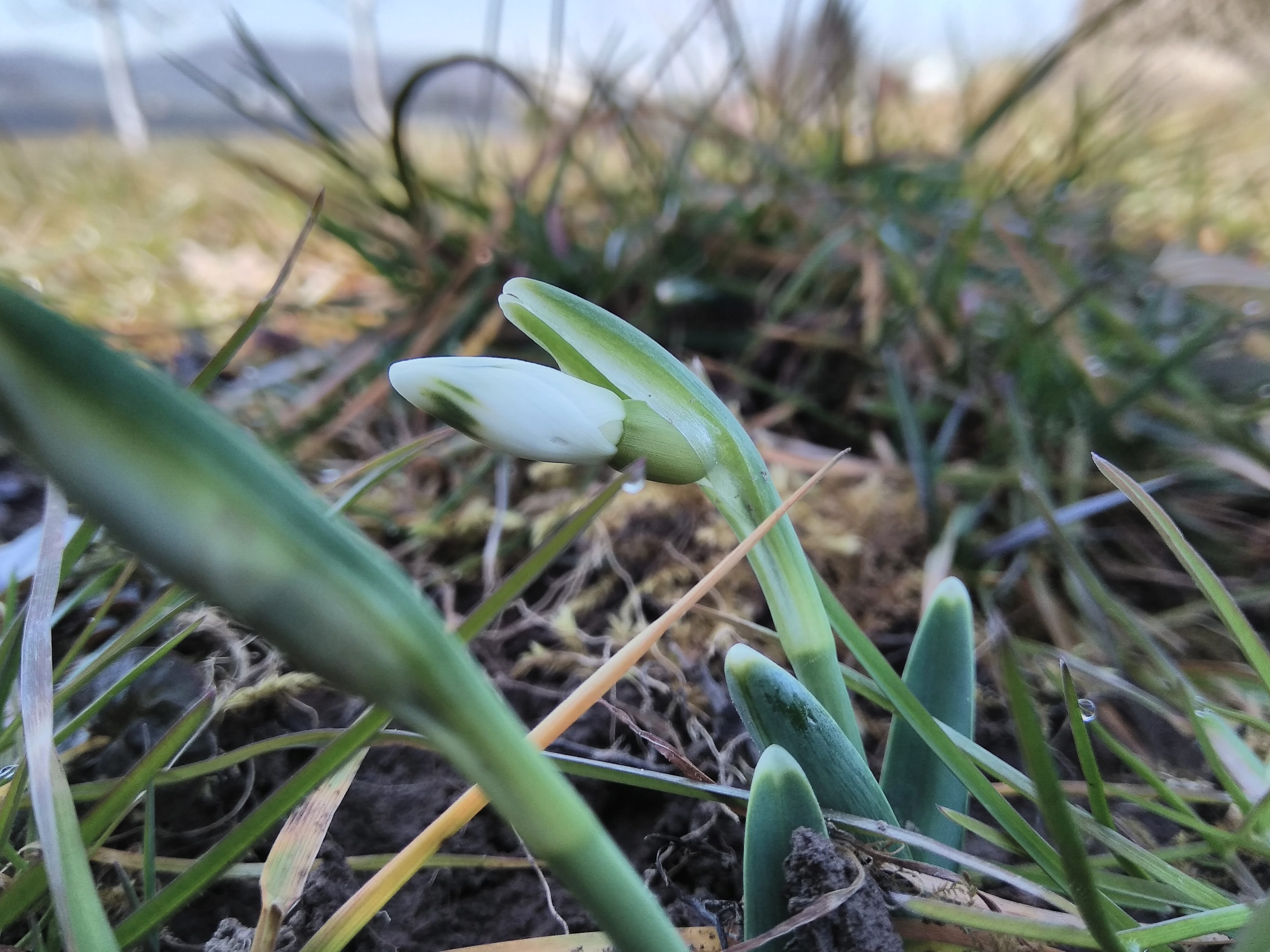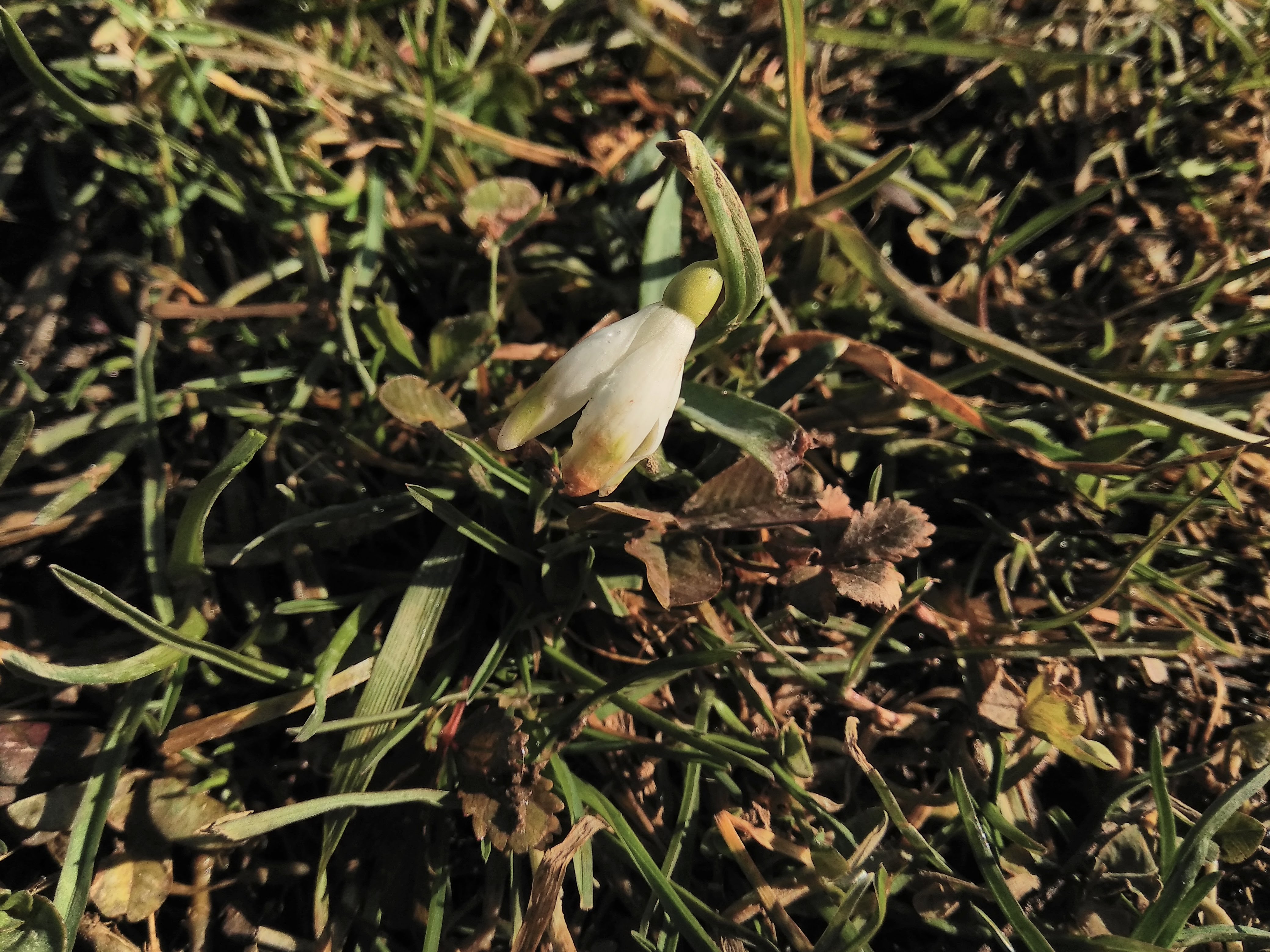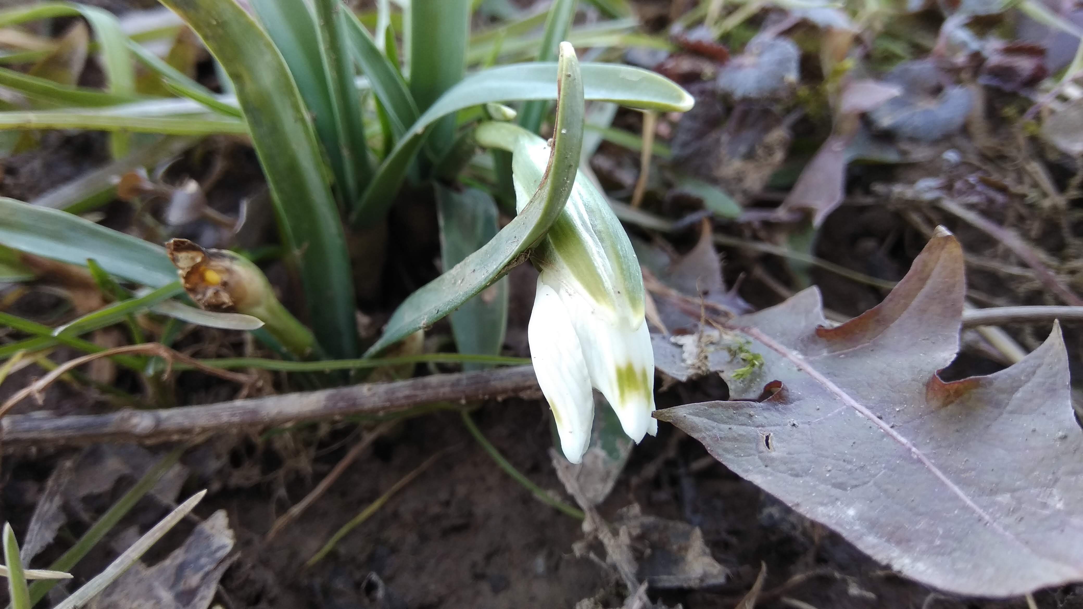 I became a bit more cautious about snowdrop flowers and their visual appearance. Some seem to have some kind of mutation that makes the yellow-ish green color to express on the outer petals as well as inside. They are quite rare and usually there are pure white on the outside. Sadly some of them were damaged because someone or something walk over them (the last photo).