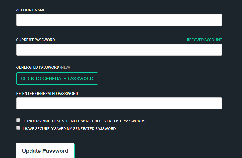 So I went to the top right where are the three stripes and press where I say change account password once I loaded the page there were three spaces where I had to put the name of the account the other was to put my password to generate the new and the another is to put the password that you generated once you put your normal password and in the part where the name of my account is supposed to be blank, so I assumed that you could change the name if you updated the password and I did that I had not saved the generated password and once I had "updated the password" I returned to the menu to put the password of my profile but I realized that I had not saved the password so I panicked and was like two days without my account but desperado I started looking for information haver if I could do something and if I could really do something I just had to put the mail with which my account is linked, then I m they go a link where I redirected to the steemit page and the only thing I had to do was put my previous password and put the new password generated and this time if I save the password.
