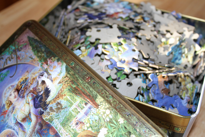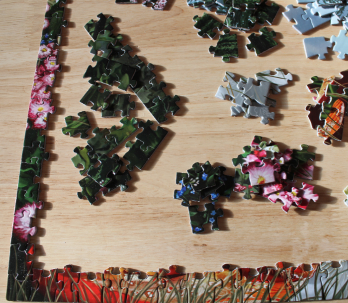 Every once in a while, I love to pull out a jigsaw puzzle and leave it sitting on a table where I have ready access to it; popping in a few pieces every once in a while whenever I walk by or have a few spare moments.