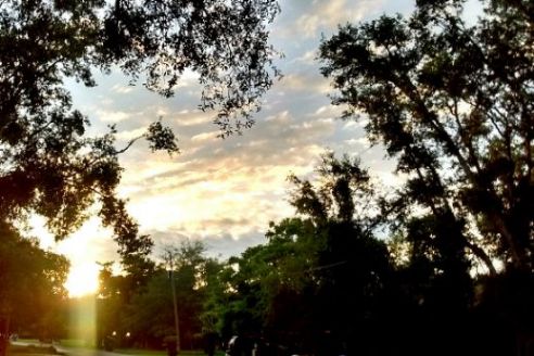 Mocking birds sang in their confused way, desperate to fit in. Mimosa blooms had been manhandled by the rain, knocked roughshod off a tree somewhere. Their perfume filled my nose. The expanse of sky in front of me, opened up by the straight road, was the color of peace. That perfume, that peace— through it I could feel infinity again. Looking up into the clouds—endless, but always out of reach—there was something about life hidden there. Or maybe it was hidden in my mind, and only accessible through looking at that endless sky. The answers were there, just out of reach. A deep breath filled me up, and I was full of that mimosa perfume and the blue dusk.