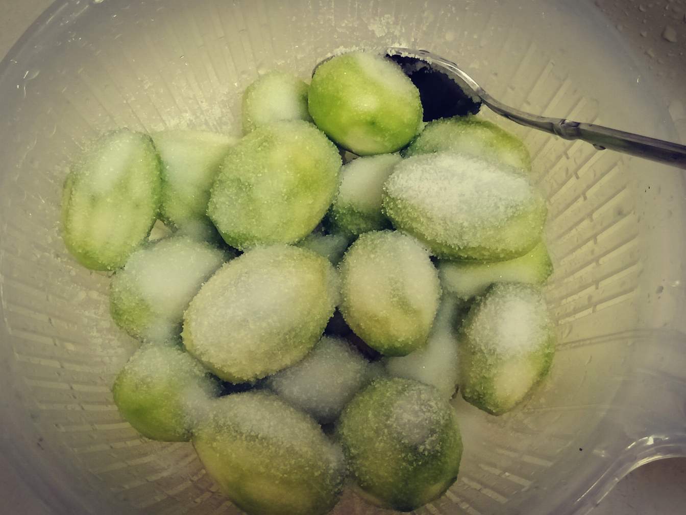 Wash off the salt and into the sugar syrup the kedondong went.