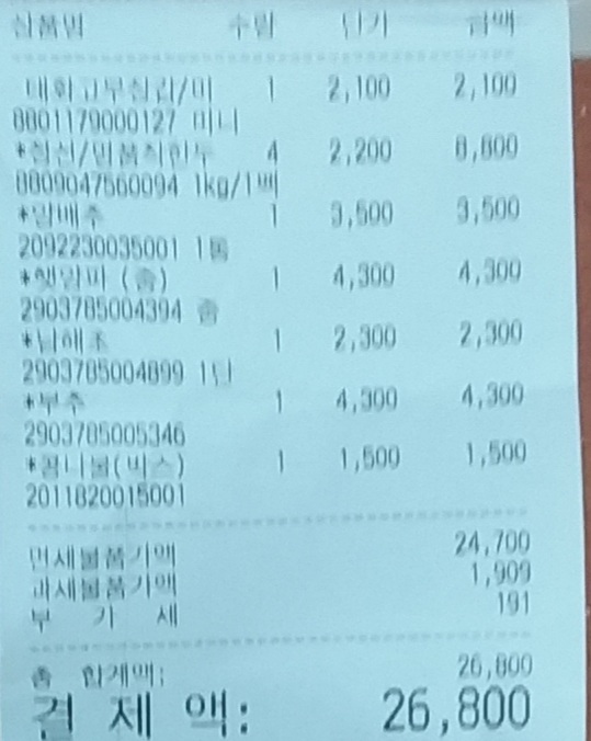 드디어 마트 에서 전화 주문한. 물품에 대한