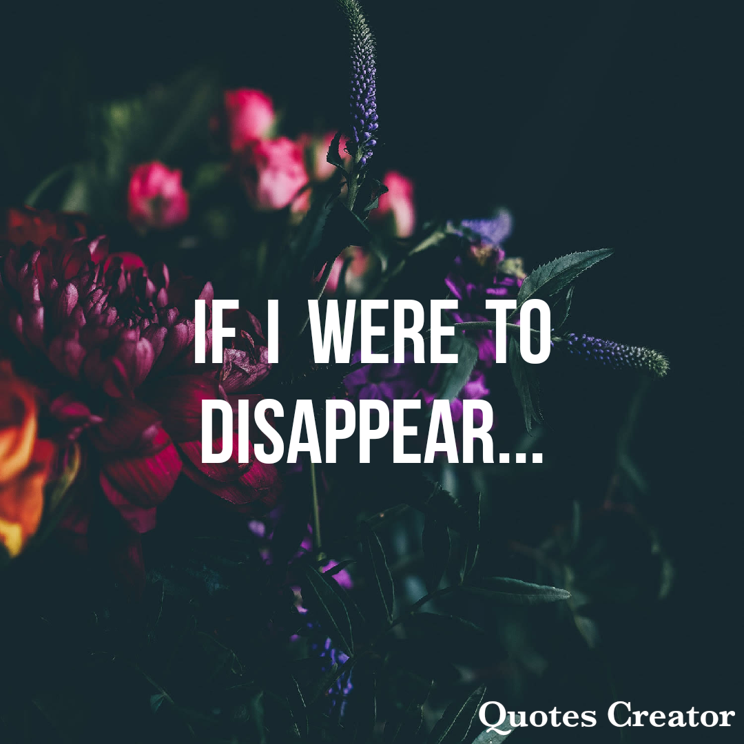 I wish I could fade into nothingness. Just blow softly into the air and be nothing anymore.