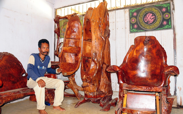 Menjadi pengrajin kayu tidaklah mudah. Diperlukan kerja keras, bakat dan seni. Paduan ketiganya, akan hasilkan produk berkualitas.