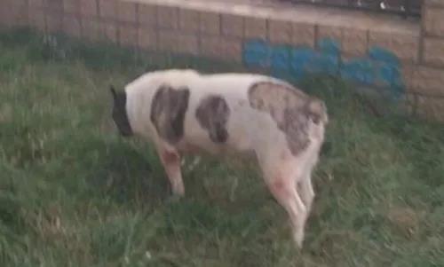 Meet a pig on the side of the road,I think people who keep dogs cats tired, began a pig as a pet?