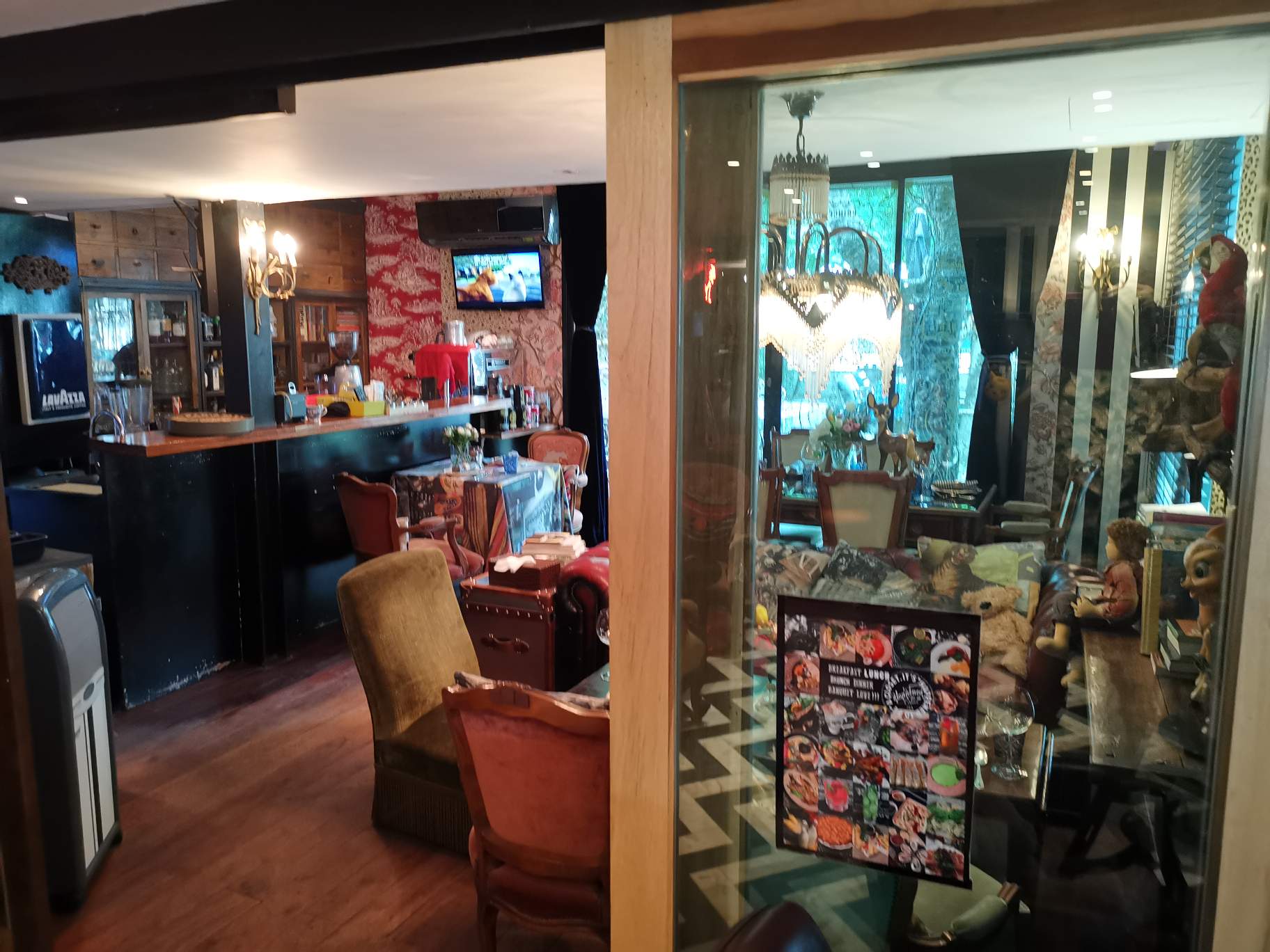 No it's not a typo.... It's happened to be a closet is actually the name of this place. Tucked in behind the hub-bub of Bangkok is this little house turned cafe / restaurant in Sukhumvit soi 23 (if you're coming from Sukhumvit Road then turn right at Whisgars and follow the street). The decor is interesting, as you can see from the pictures. The dessert bar tantalises as you enter the front door before having your gaze drawn to the myriad of curios and knick knacks exploding into view. The food is very good: I am looking forward to going back for the sausage bacon and eggs. Not a cheap place but delicious. My only suggestion if you're going is to bring a coat because the air con was turned up and it was really cold.