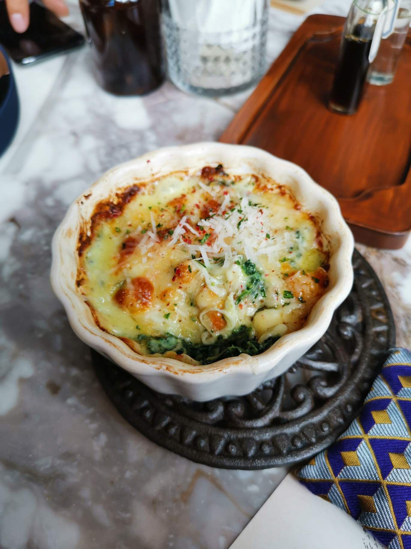 Quaint, delightful and delicious, the Featherstone cafe is tucked away in Ekkamai Bangkok in what looks like an old house. Limited street parking on the outside, the inside has been renovated to a cafe & restaurant on the right hand side and a curio and trinket shop on the left hand side. I ordered the cold brew coffee and a baked spinach, my son ordered an iced americano and my wife ordered tea. The cold brew, though considerably more expensive, was much smoother and better tasting than the iced americano. The cafe filled up quickly after 11.30am on a Sunday. The curio and trinket shop was also very interesting, though mostly scarves, bags, crystals, jewellery etc.