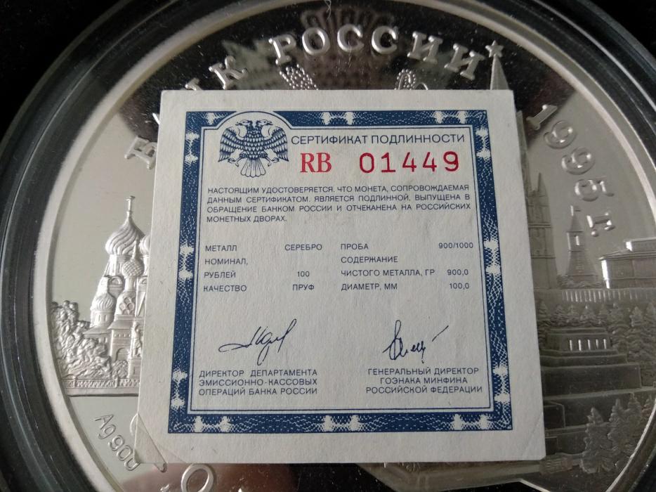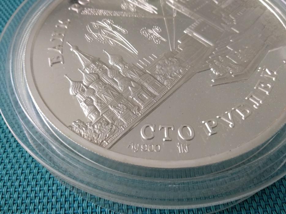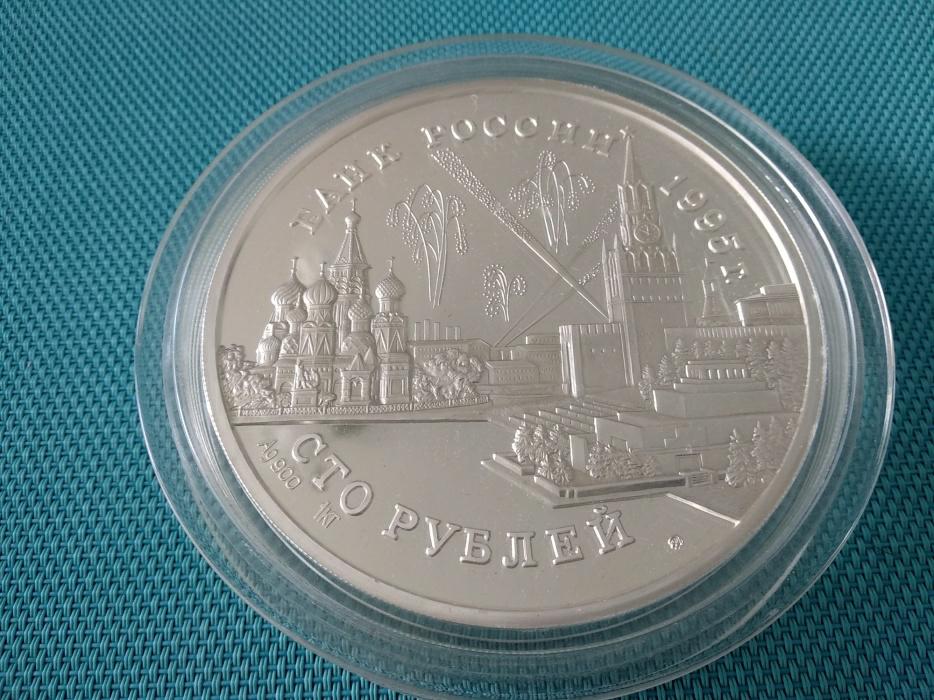 100 Roubles 1995 - Summit / Ag 900 Silver Coin 1111g