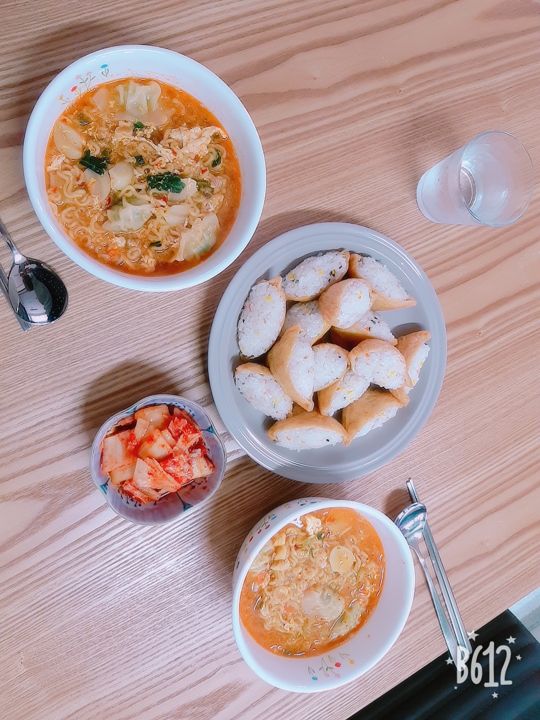 그럼 전 라면에 유부초밥을 먹겠나이다^^