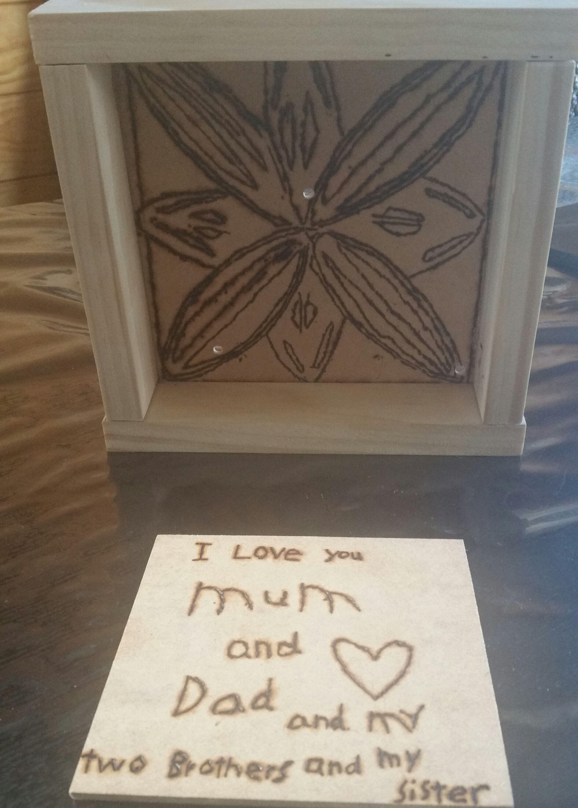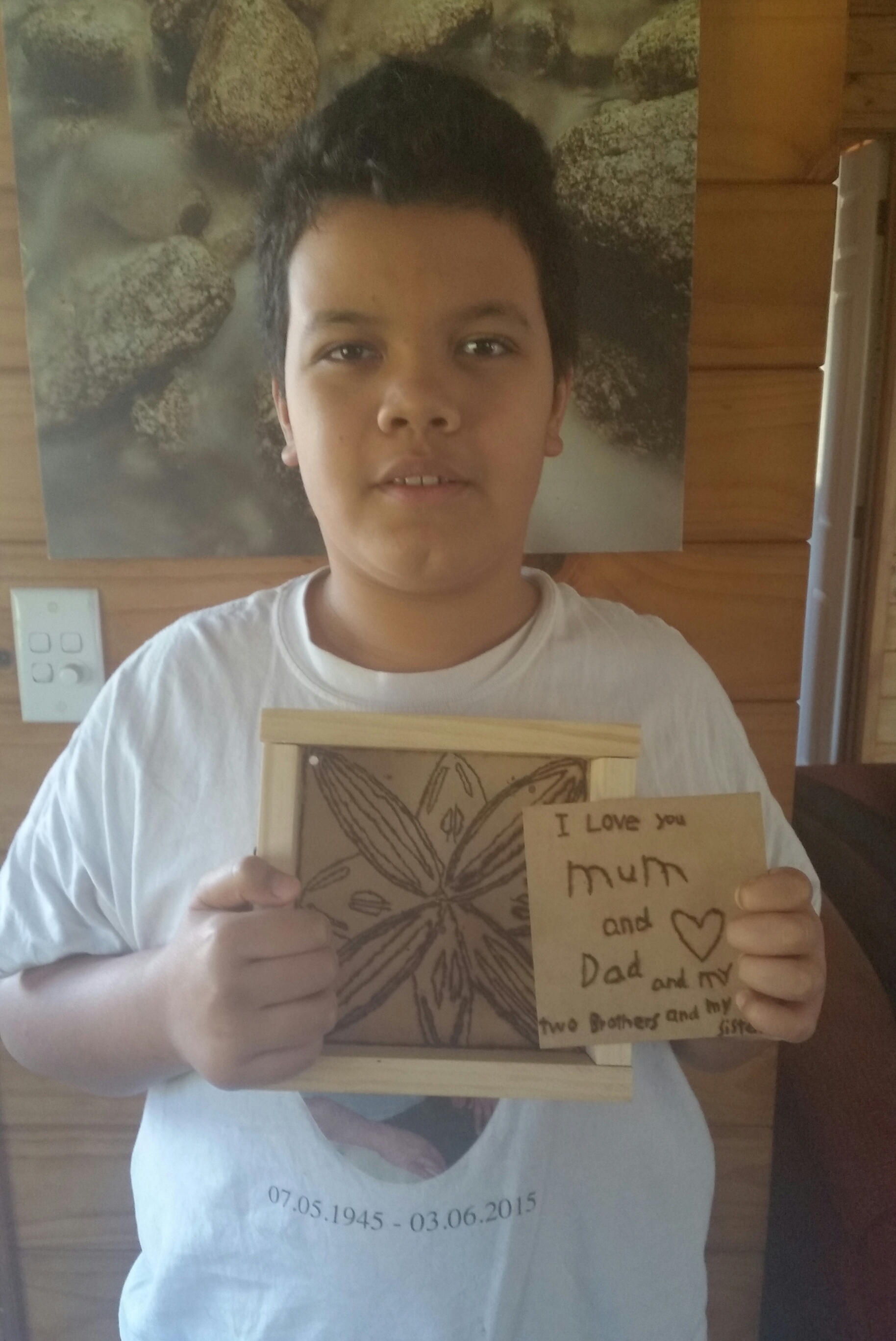 My 10yr old Son Lysharn is Autistic he is on the mild scale of Autism, I am so proud of the way he trys his best at what ever challenges he faces wether he is being teased because hes different I must say he gives it back too lol but also trying new things like at school Art in technology he sees things differently but gives it his all, Lysharn knows what is the most important thing in his life and that is his family and he knows he is Loved and that we are his biggest supporters in his life it shows it right here...❤ in woodwork he made this frangipani flower and wrote this little message he knows he is half Niuean...he used a hot poker stick to burn the wood and he said he kept burning his fingers lol I think he did awesome.