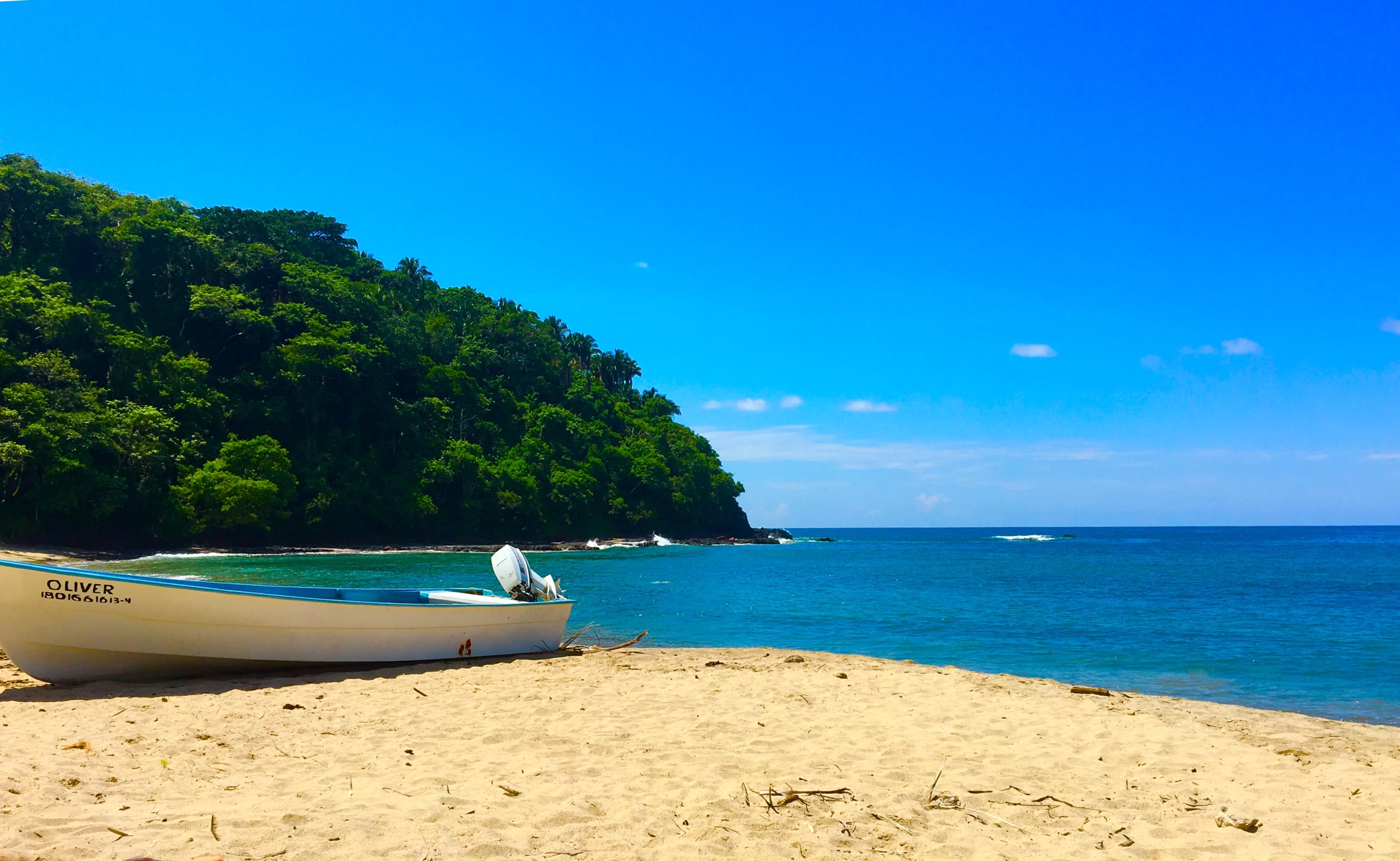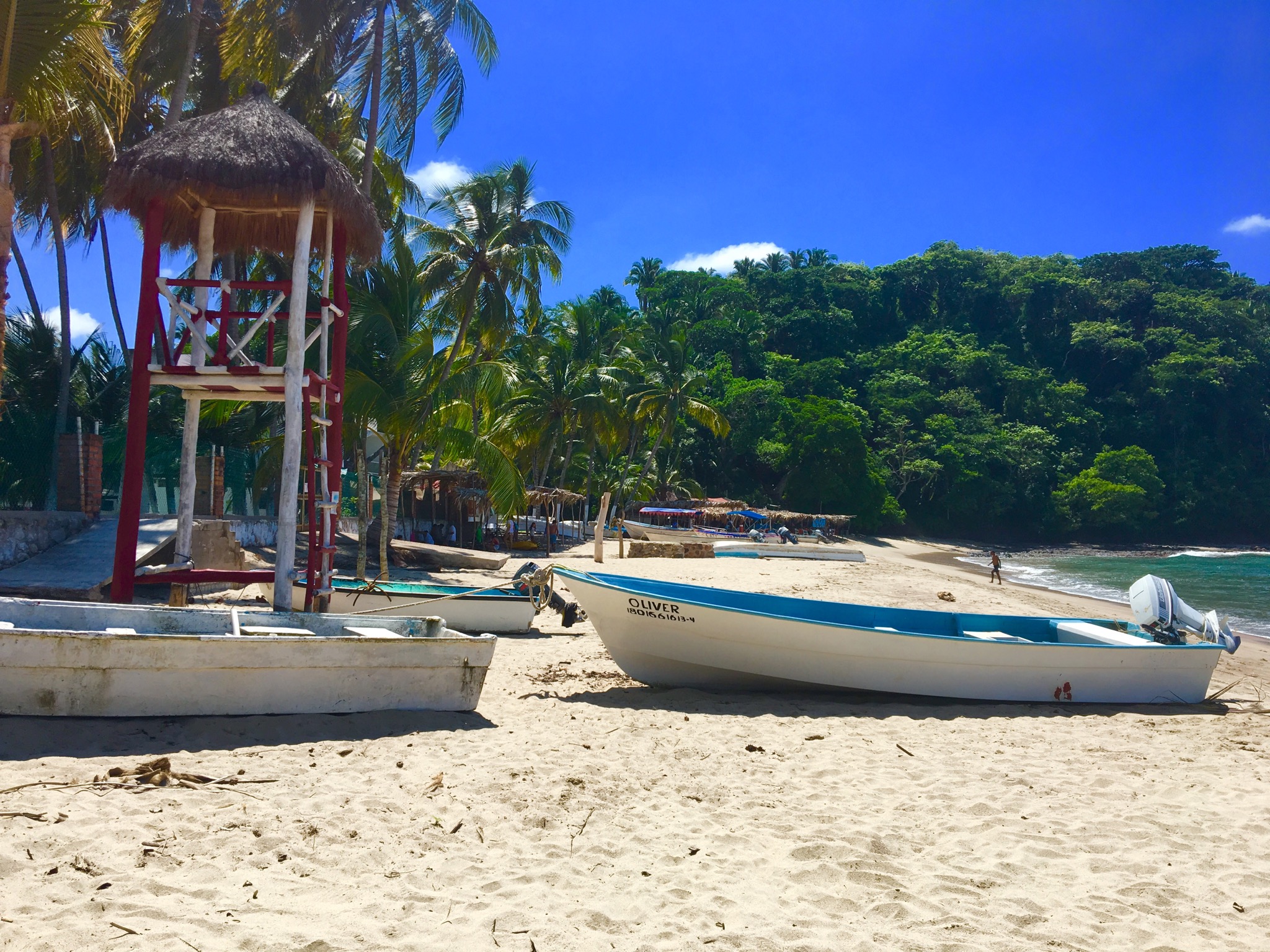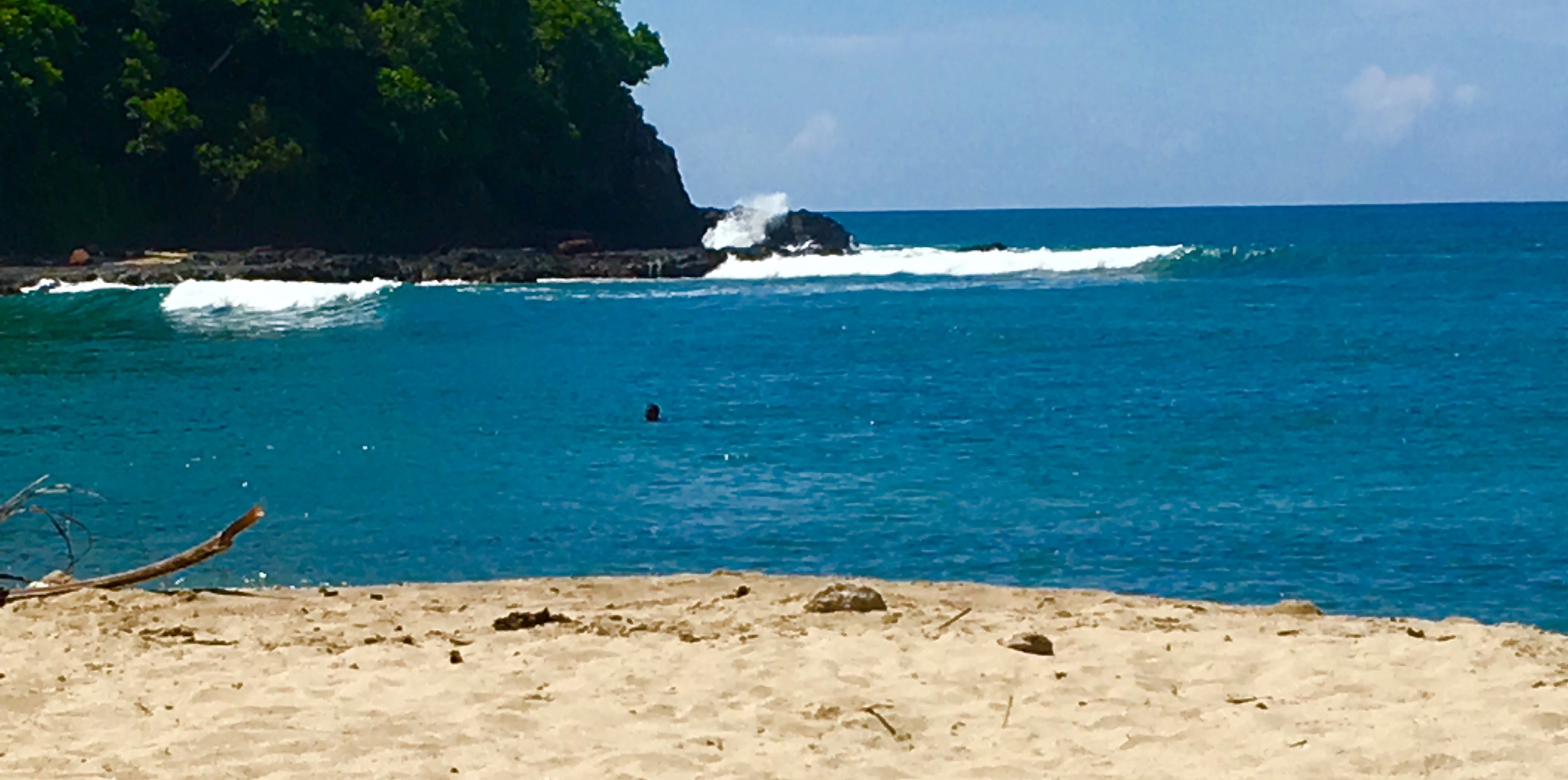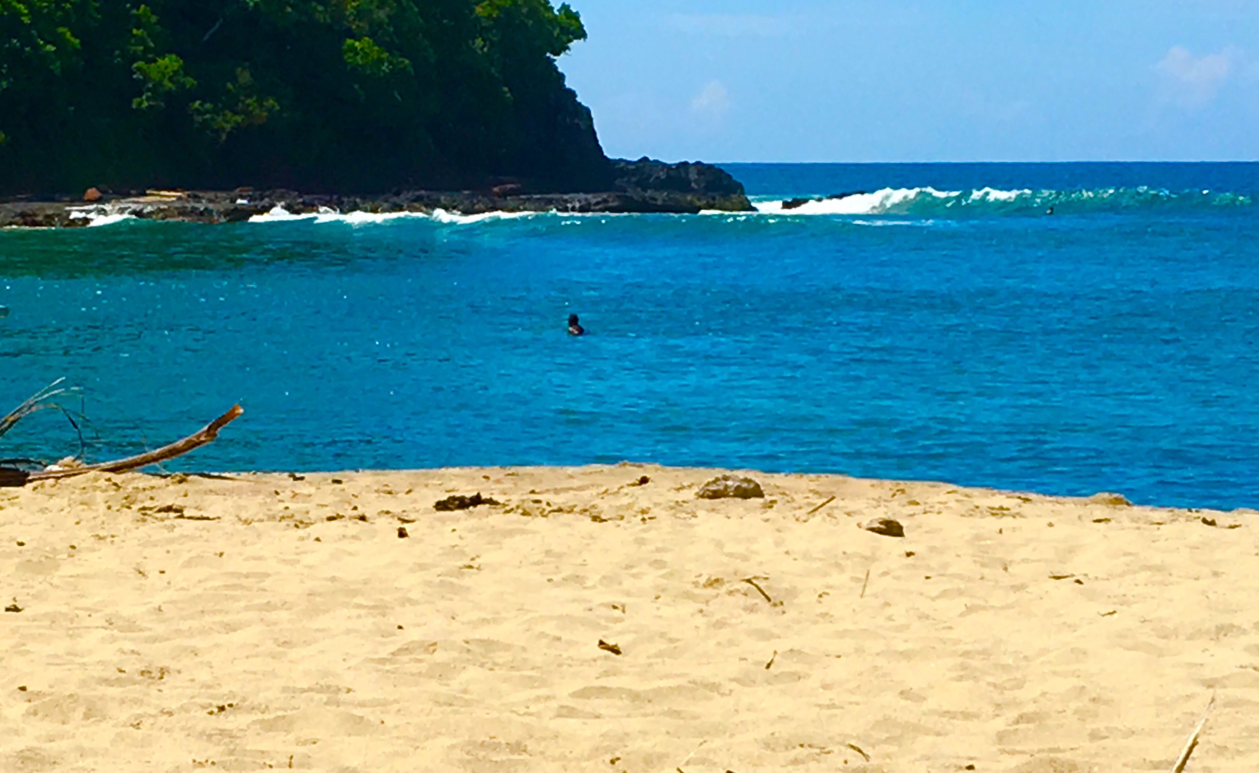 The point from my beach chair is gorgeous. Deep into the rainy season, the hillside is covered in vibrant green jungle foliage. Just a stunning sight to behold.