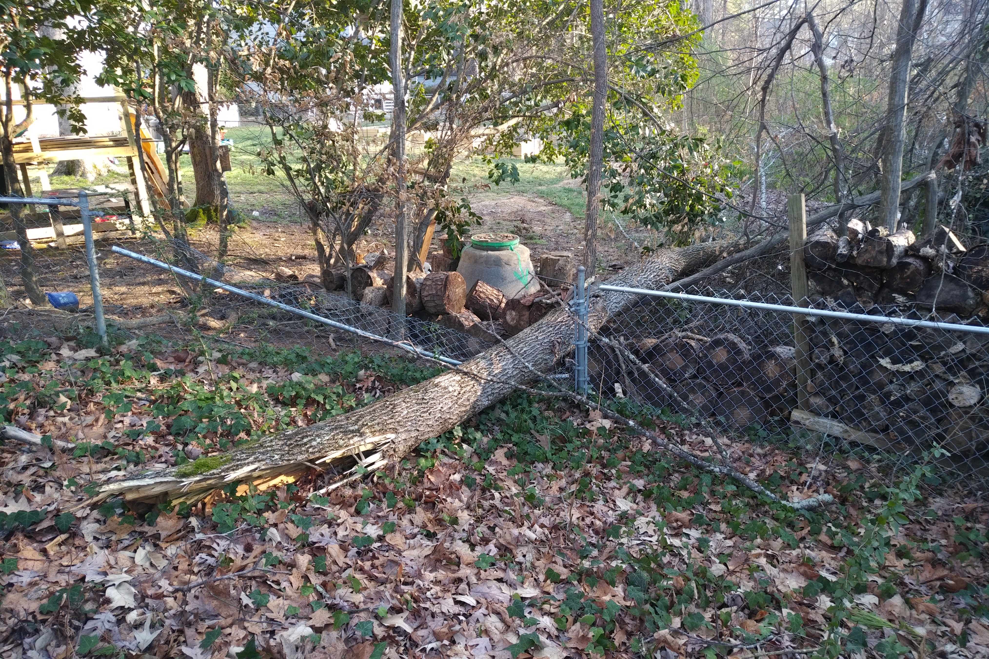 A tornado didn't touch down in my backyard, but the wind took out some trees or at least, ripped parts off of a trees.