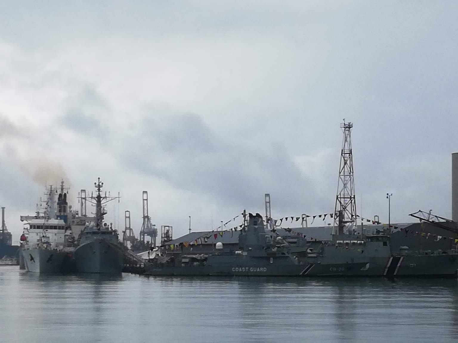 it's independence day and a public holiday and even the coast guard ship is festooned with flags in celebration