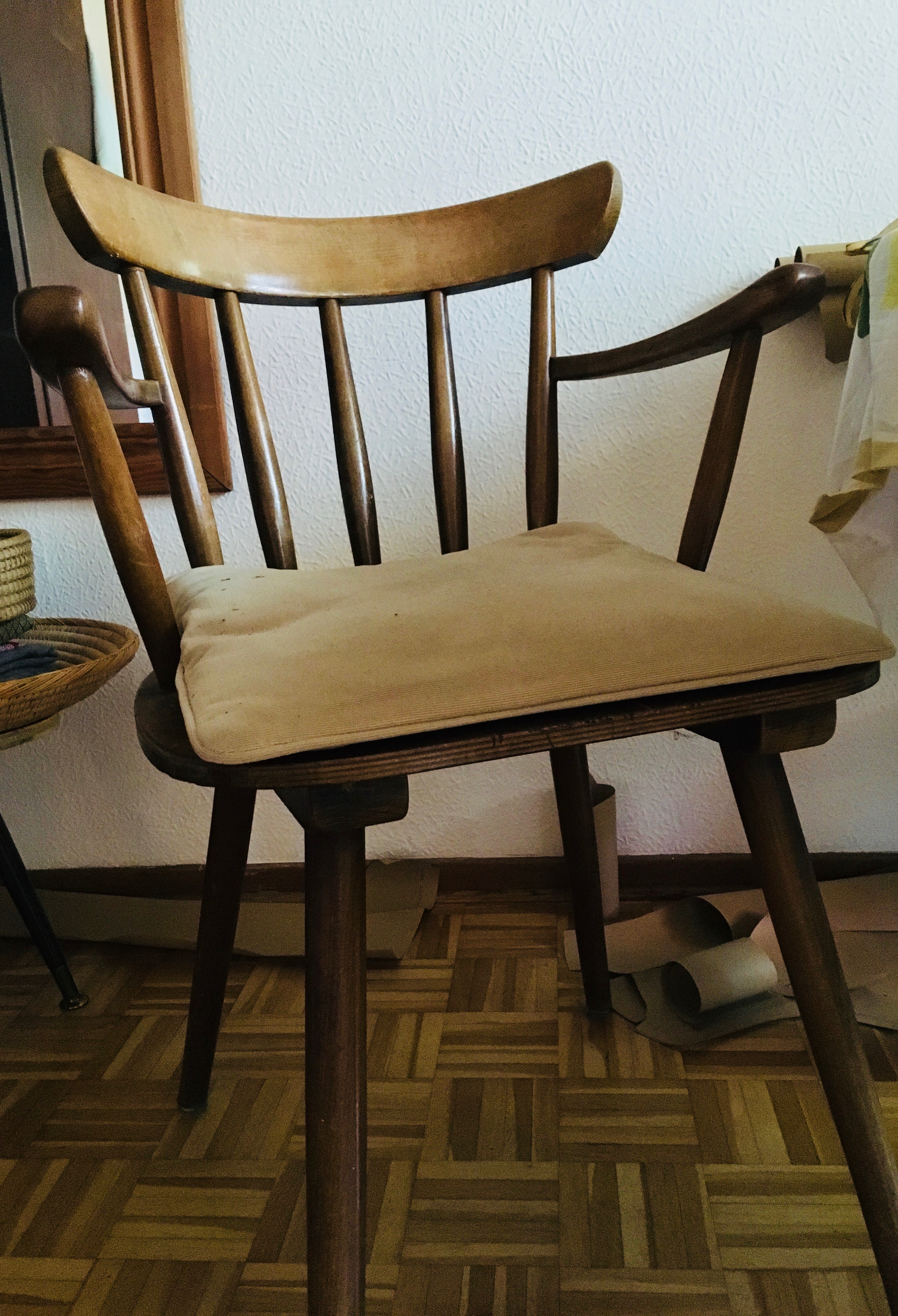 I discovered this chair together with a friend from Hamburg. About a dozen of them were simply placed on the street in Hamburg's Schanzenviertel for disposal by a restaurant, about seven years ago, when we had a drink there in summer. We walked by and thought: "Oh, but they are of good quality!" He managed to get a chair, I managed to put two of them in the trunk. I think I got the car I was driving with my ex-husband and we squeezed the chairs into it.