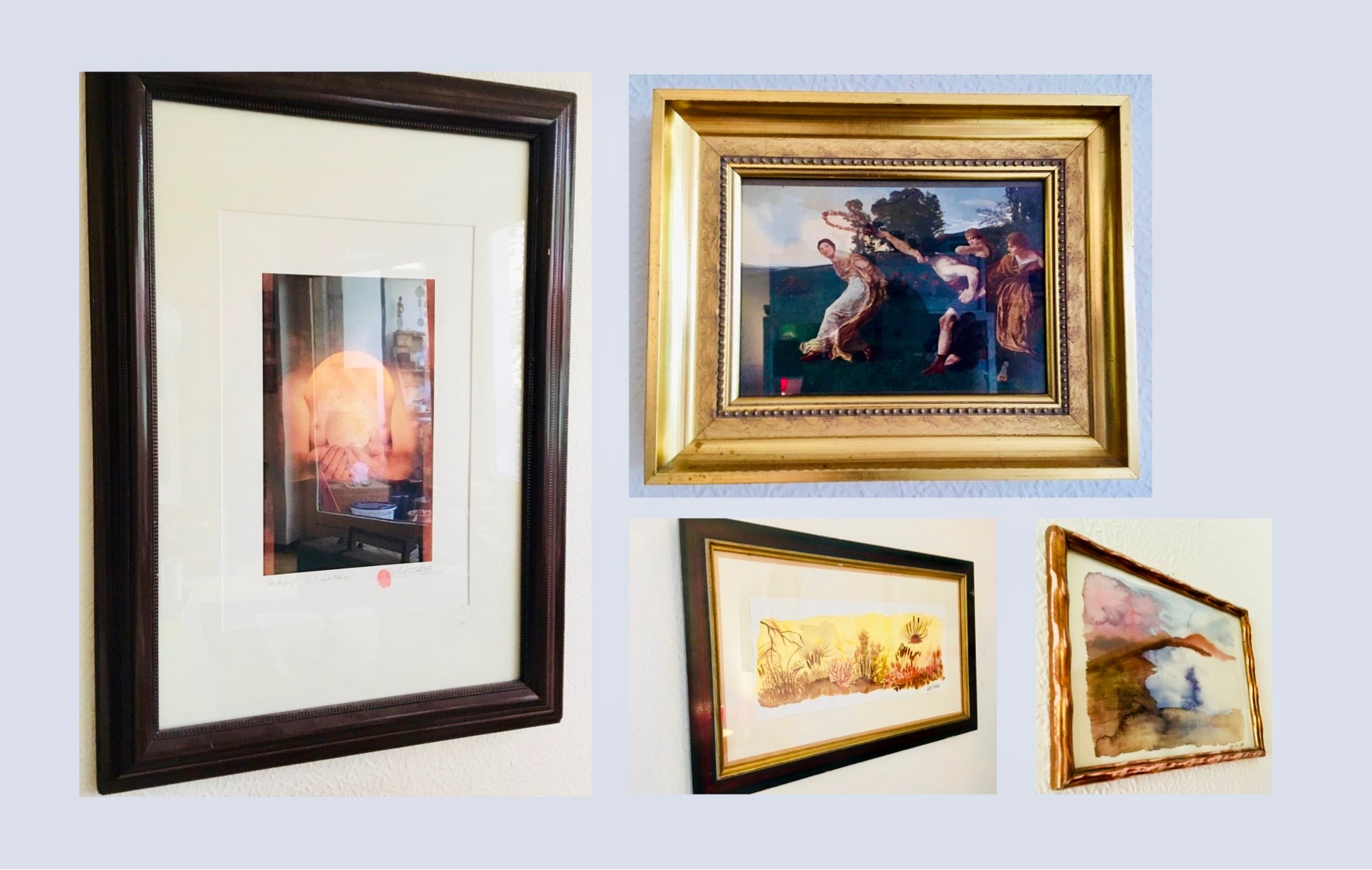 An older lady let me in. I gave her my bouquet to greet and we talked briefly. She showed me the frame. When I asked her what she wanted for it, she shook her head and said: "Oh no, nothing. Only when you advertise and you want to give something away, people think it's no good and nobody comes." I was unbelieving. Many people would have loved to have the frame as a gift. I was now the lucky one. I put a picture of @reinhard-schmid in there, my favorite artist here on Steemit. Reinhard, I miss you. He gave me this picture for a reason I don't remember, but it was certainly a very friendly one.