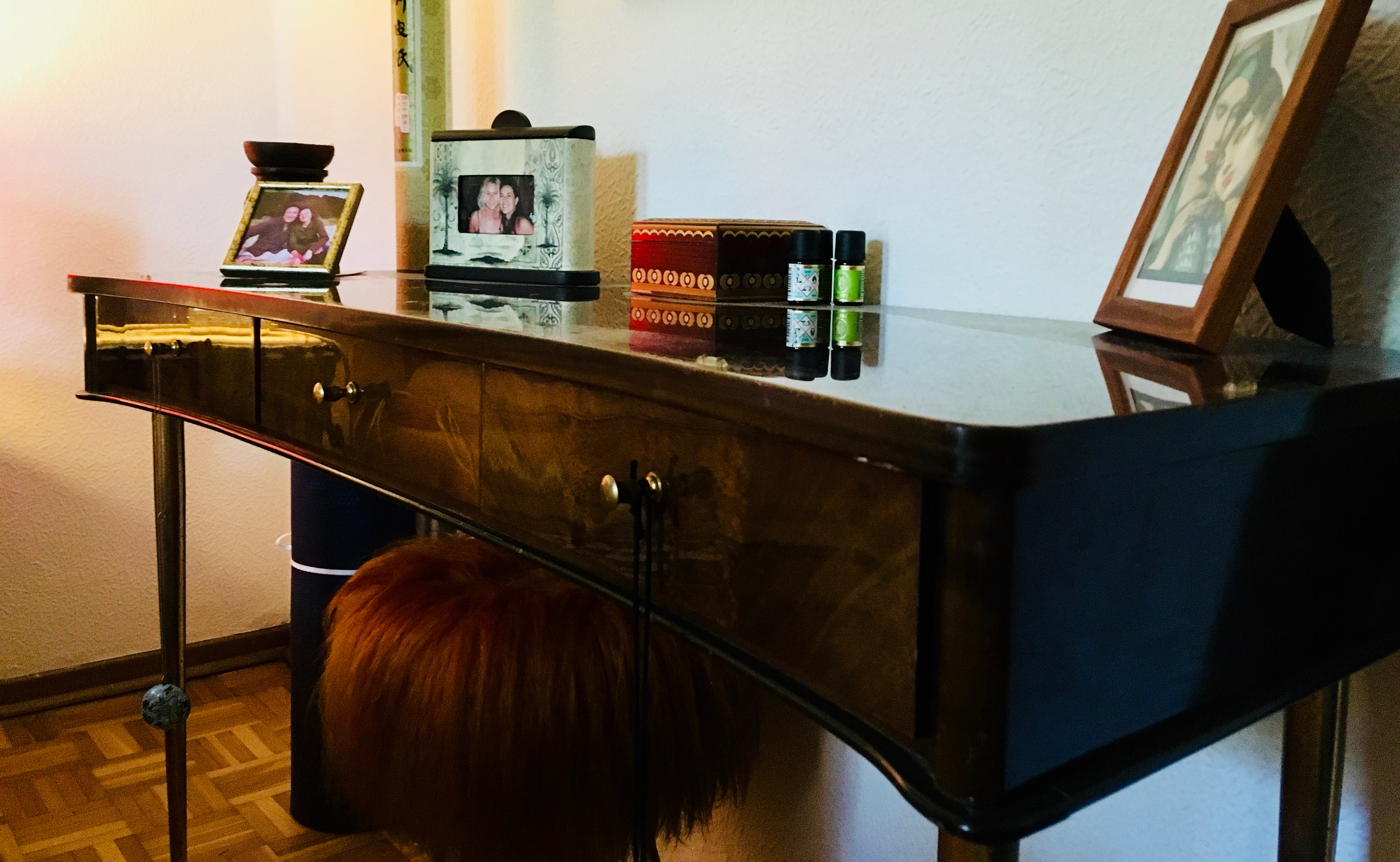 On the same day I bought the three-legged hairy thing from someone else. I intended to use it with the make-up table (for which I never used it).