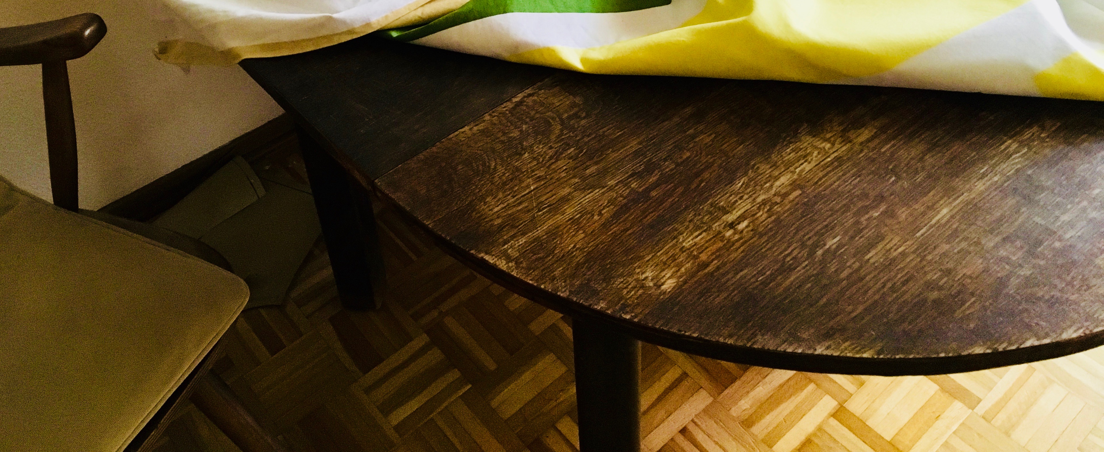 This is an old wooden table of cheap design. I keep it for reasons of nostalgia, because it picks and is no longer the most steadfast. I got it from a good friend just when I needed a table. It's funny that one of my tables (a smaller model) is housed with her. There is no more space here.