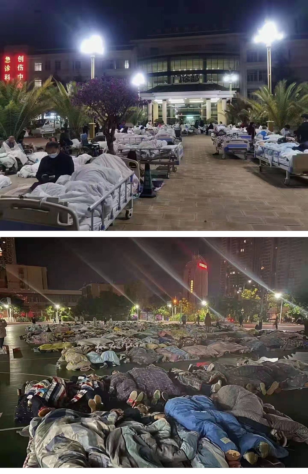 街上空曠的地方和廣場上已經睡滿了人,祈禱地震快點兒過去吧,讓人們都回到各自的家中,各自的生活中,恢復正常態,不再驚恐。
