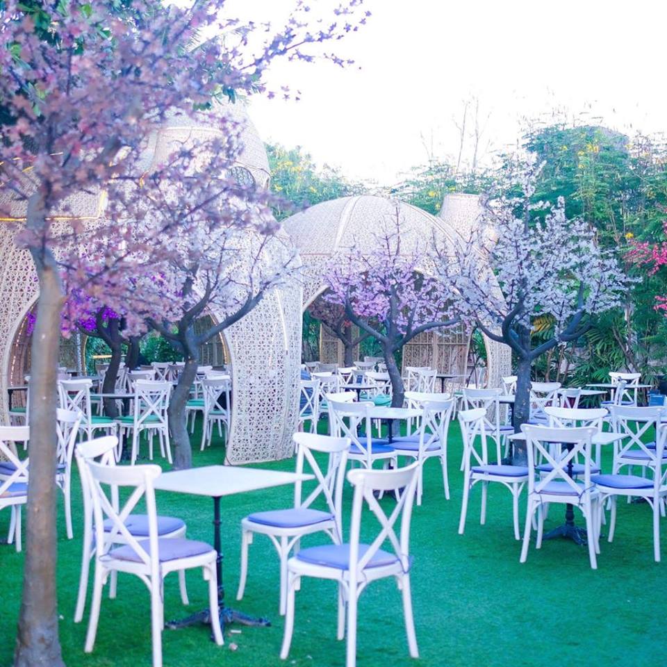 During the day, these overhanging huge balls are of white colour. Adorable tables and cute chairs are displayed for occupancy of diners.
