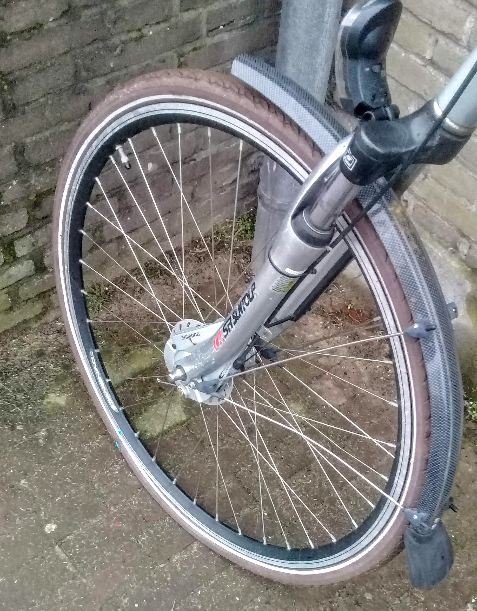 I just leave my client and see that I have no air in the front wheel ..... I immediately went to the bike shop (luckily it's close). The inner tube was repaired in 15 minutes and to the next customer .... However, it did not last long and I did not get far, when after the repair the air went down again ... and back to repair ....