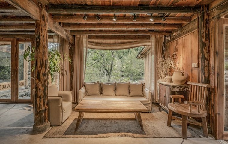 Springstream House was created by the architectural design unit WEI architects inspired by the surrounding natural landscapes. It is intended to create a living room-like structure, like a tree rooted in the ground, growing freely in the natural environment. This house, which resembles a big tree, combines people's dynamics, sight, and frequency with close-range and distant mountains to form a unique scene of life.