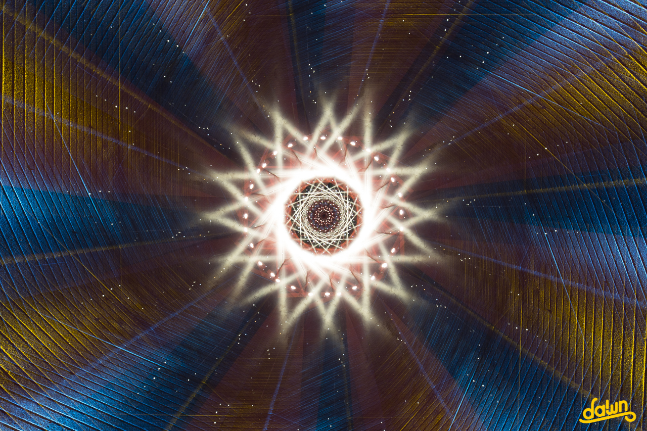 Lightpainting created in real time, captured to the camera in one single photographic frame.