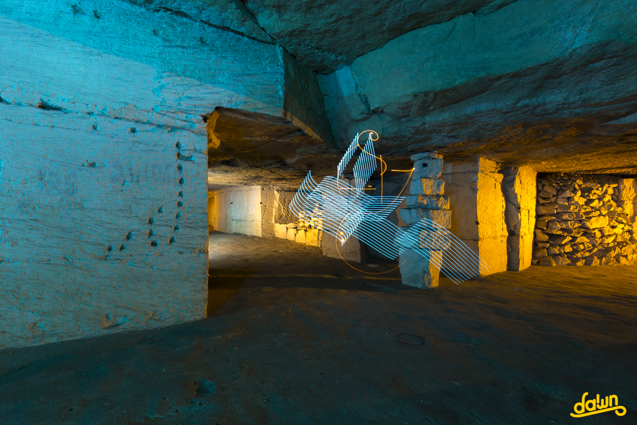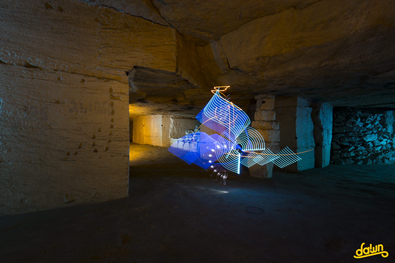 Lightpainting created in real time, captured to the camera in one single photographic frame.