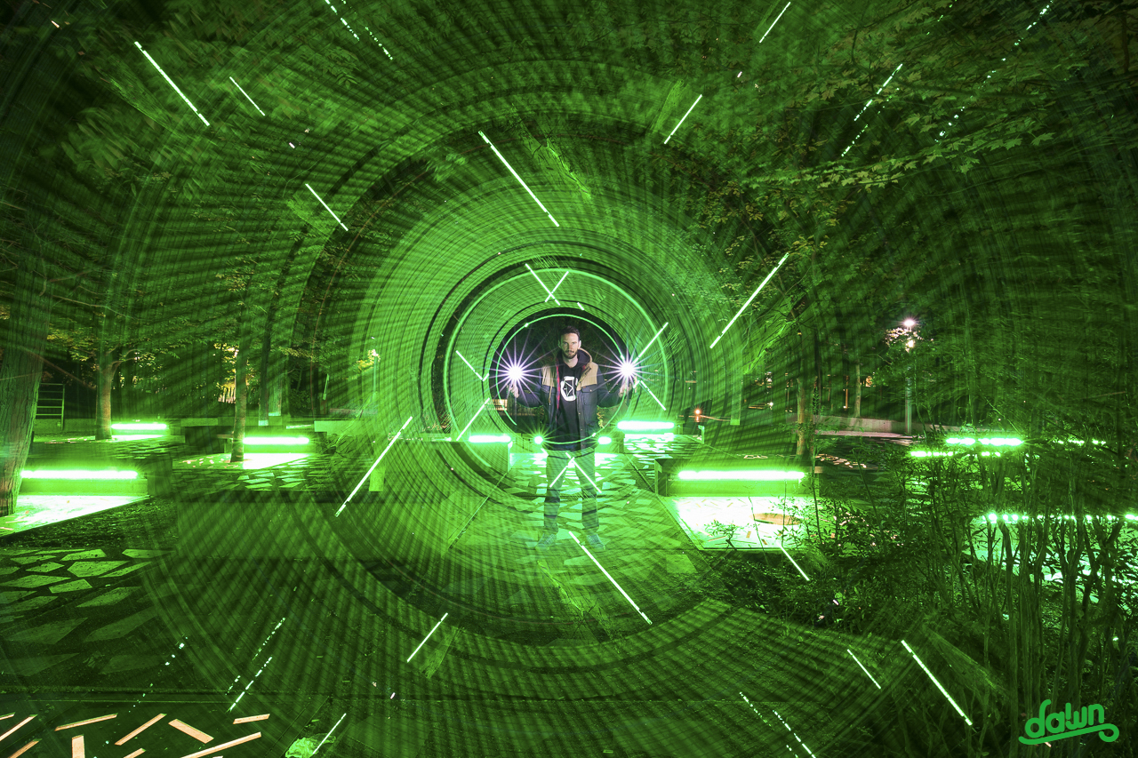 Lightpainting created in real time, captured to the camera in one single photographic frame.