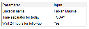If you wish to avoid sending followup message within less than 24 hours, after the contact request was accepted; you need to setup the cell K8. You need to past there the time separator for “today” which is used in you linkedin account (this depends of the language setting you are using) :
