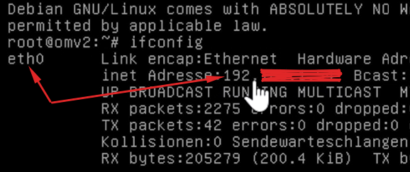 Jetzt brauchen wir die IP-Adresse des Servers und die finden wir ganz schnell mit dem Befehl "ifconfig"