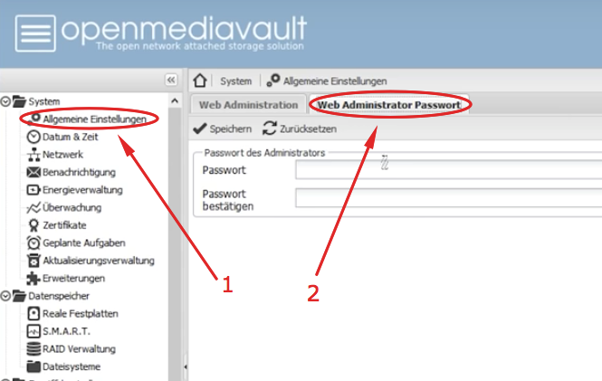 Das Standart Passwort*: "openmediavault"
