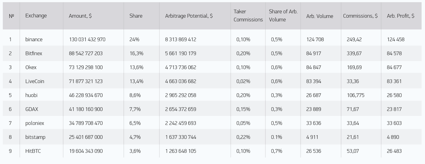 LIQNET team has done calculations of competitors’ profits. They utilized this data to create a profits model of the exchange with three scenarios. Nine largest exchanges were taken for calculations (See below table). Average monthly trading volume was calculated, which was equal to $46 228 934 670.
