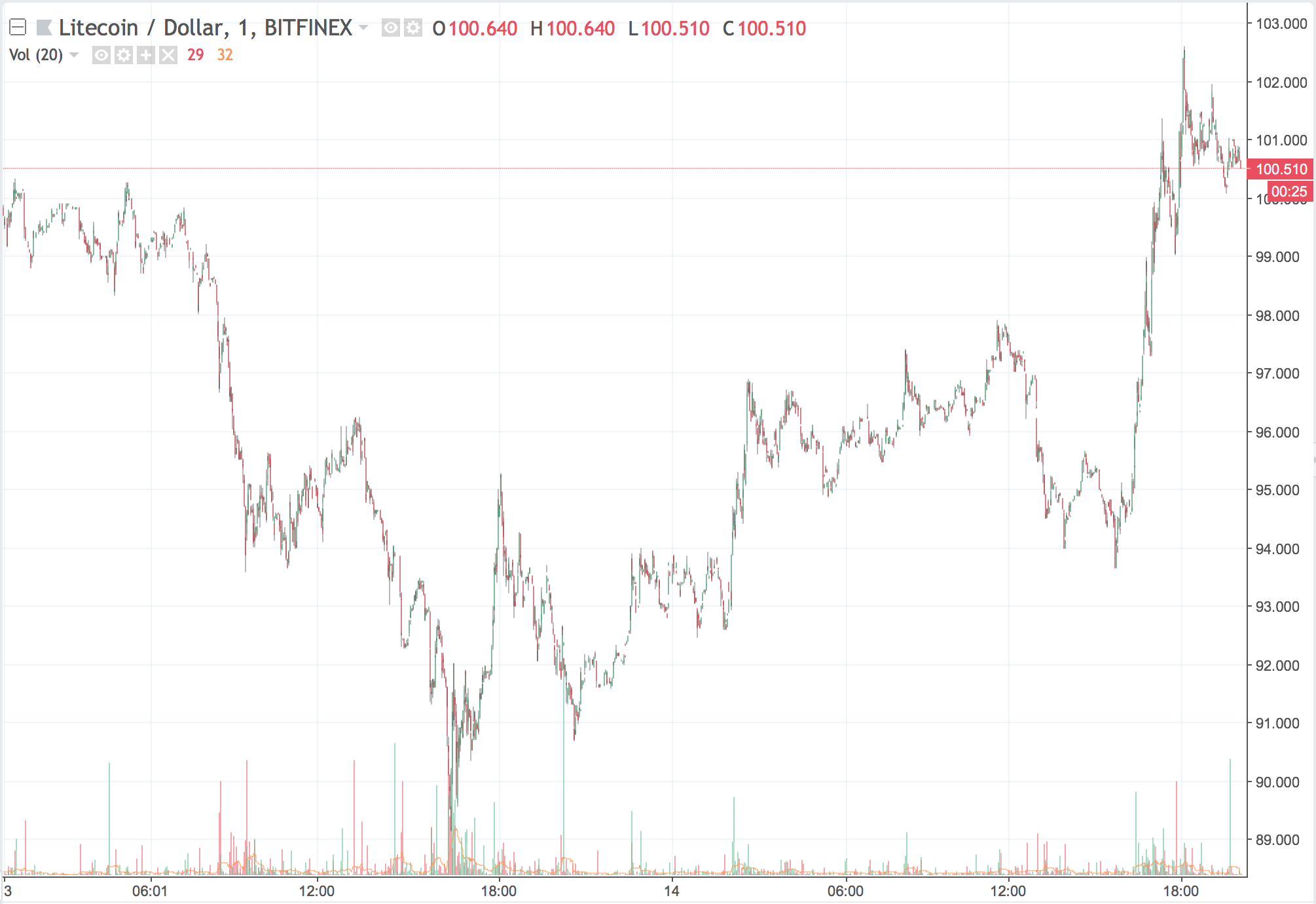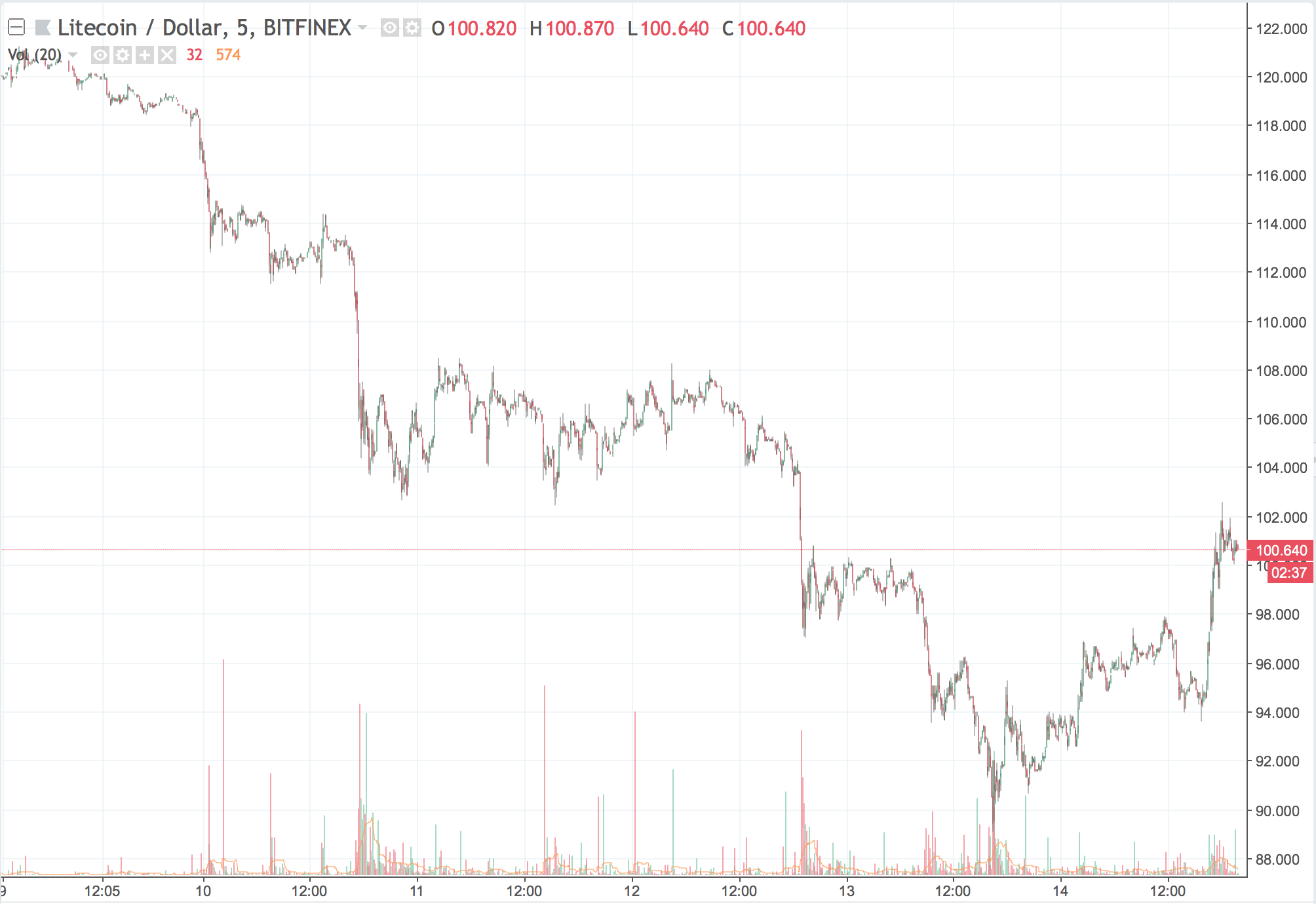 The past 24 hours has given us our first hint of a reversal in the Litecoin markets. After a week of nearly continuous downward momentum in the value of Litecoin, there was a reversal at $90 and the value recovered back up to $100. It should be noted that similar reversal occurred twice at the end of May before the markets resumed their downward momentum. Today's recovery is almost identical to the May 29 recovery that is visible on the 1-month chart, and as a result, we here at CryptoNews 24/7 are cautiously optimistic that this could be a sign of some strength returning to the market, while still keeping an extremely careful eye out for any sign of a resumption of downward momentum.