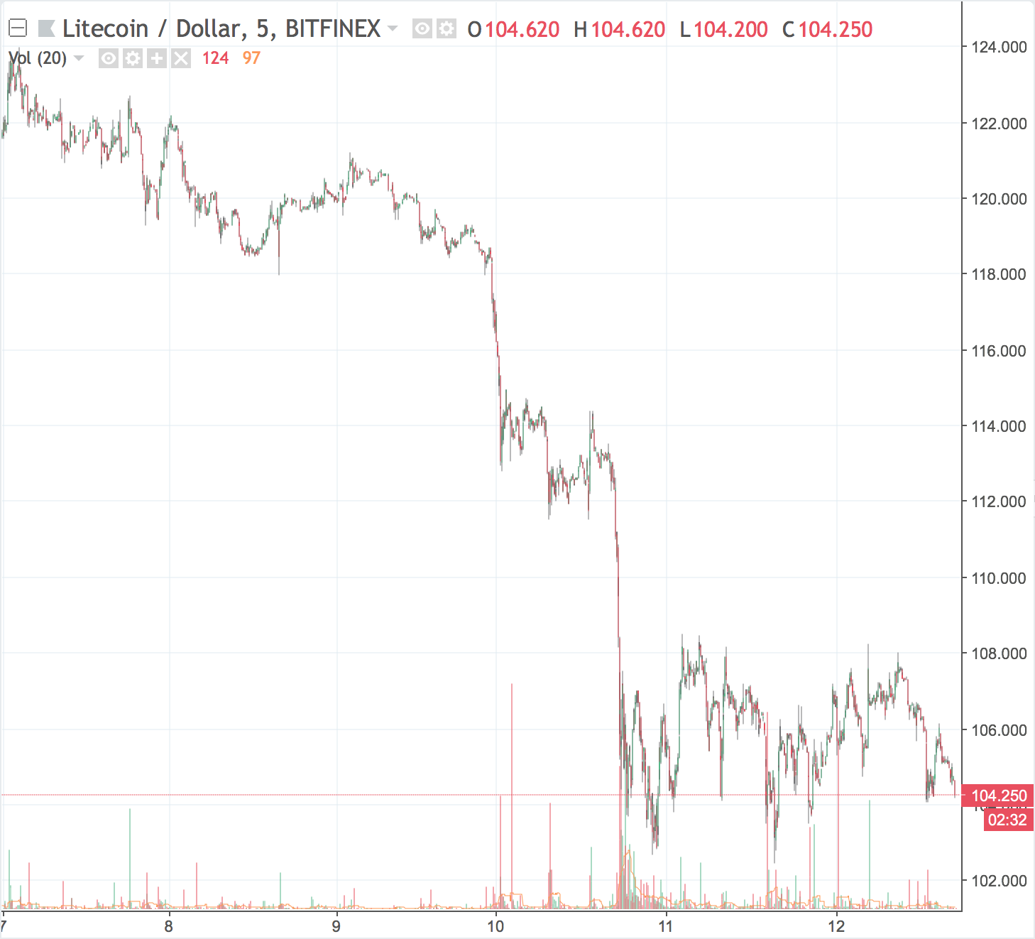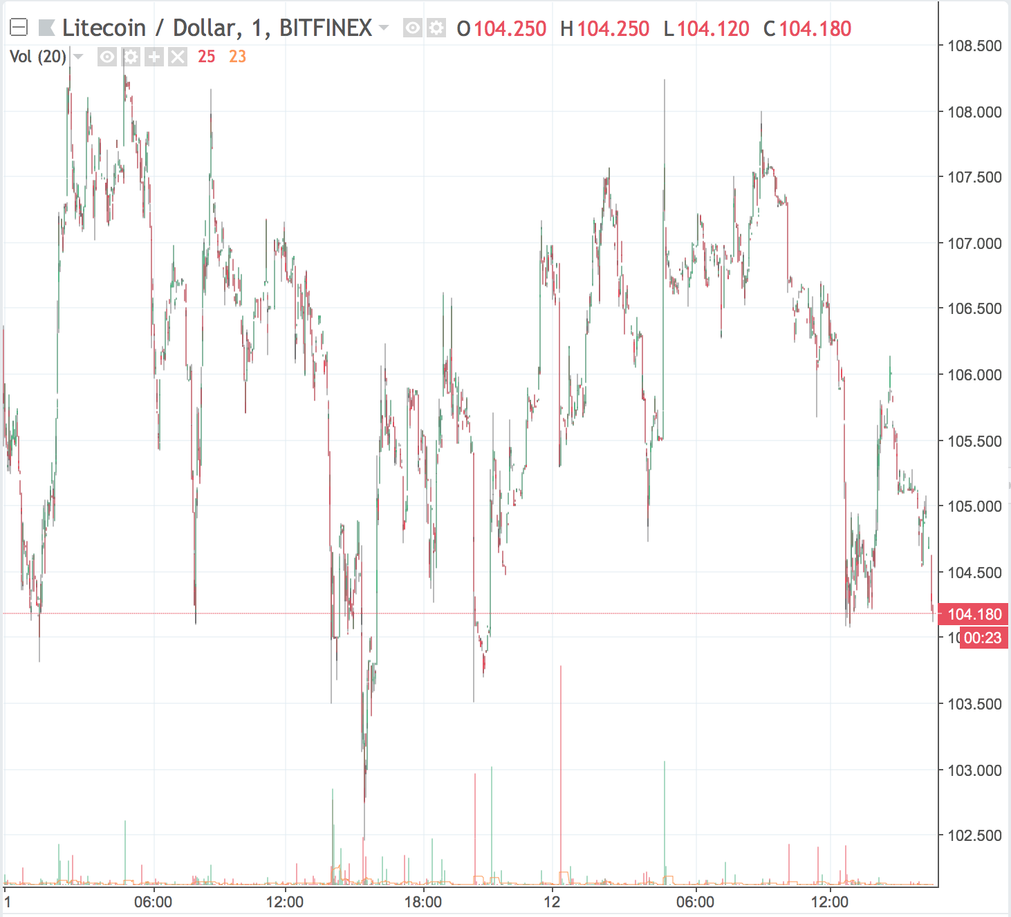Litecoin appears to be temporarily stable at the $106 level. As you can see from the 1-month chart, at the end of May Litecoin experienced a similar drop to what we experienced earlier in the week, before stabilizing for approximately 2 weeks worth of minor swings that were perfect for those traders seeking to exploit arbitrage opportunities. We will definitely be keeping our eyes on the markets for upcoming arbitrage opportunities if that trend repeats itself. However, we here at CryptoNews 24/7 believe that the next major movement in the Litecoin Market will be another multi-dollar dip in value. The announcements over the past few days by the United States’ Chairman of the Securities and Exchange Commission regarding their stance on Bitcoin not being a security, while most ICOs are will likely strengthen established cryptocurrencies like Ethereum, Bitcoin and Litcoin positions in the long-term, but we are currently experiencing temporary losses while non-professional investors are wrapping their heads around what all of this means. We here at CryptoNews 24/7 expect the market to dip every time the Chairman seeks to “clarify” their position.