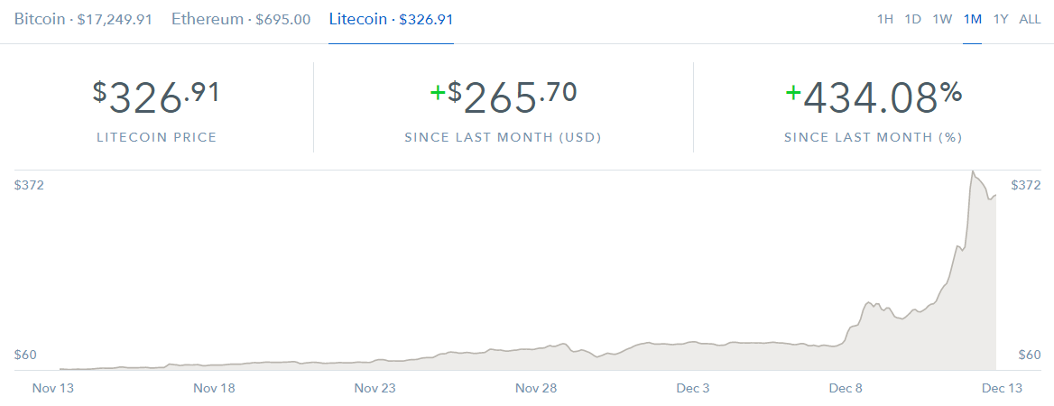 As what they say, Litecoin is the silver to Bitcoin's Gold and they are indeed right. While Bitcoin has shown tremendous increase in market value and capitalization, Litecoin also has a happy story of its own. Litecoin reached a new-all time high of $370+, a 4000% increase as compared to the start of the year.