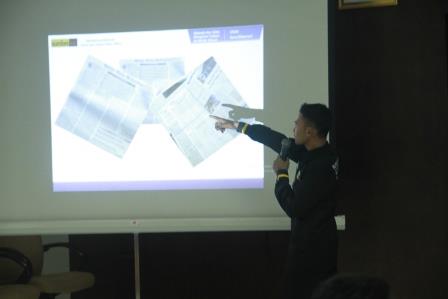 Sedang mengisi Workshop Menulis Opini dan Rilis di Aula Pascasarjana UIN Ar-Raniry, Minggu, 22 April 2018. Foto: Meutia Gardena / Instagram @roni_officialnet