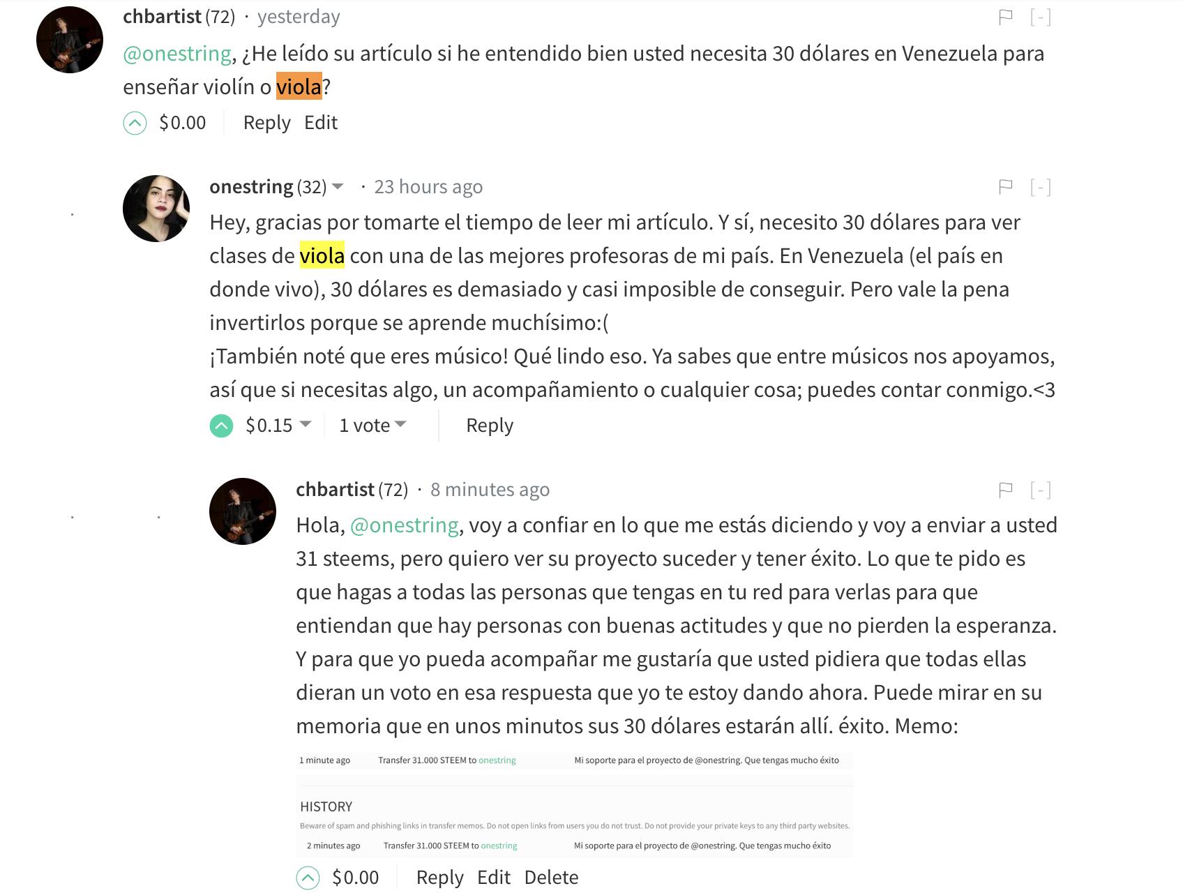 Hey, gracias por tomarte el tiempo de leer mi artículo. Y sí, necesito 30 dólares para ver clases de viola con una de las mejores profesoras de mi país. En Venezuela (el país en donde vivo), 30 dólares es demasiado y casi imposible de conseguir. Pero vale la pena invertirlos porque se aprende muchísimo:(