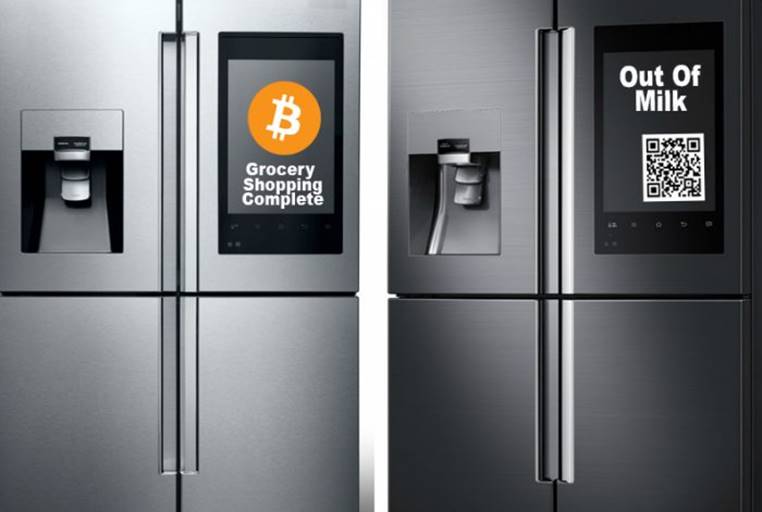 Your fridge is connected to the internet and with that to the nearest favourite grocery store you buy milk from. As soon as the milk reaches a level called the "reorder level" - which you have set along with your cryptographic, unhackable digital signature - the refrigerator contacts the store through an app and orders for the milk.