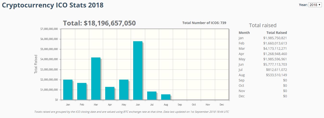 Raising funds for a blockchain project via ICO has become a standard for the last 3 years. Total amount of bot ICO’s held and funds raised through 2016 to 2018 have both increased. In 2016 total of $0.095 billion raised with 43 ICO’s. The total amount raised was $6.2 billion in the year 2017 with 371 ICO’s. The amount of funds raised is $18.1 billion in the first 8 months of 2018 with 739 ICO’s. Eventhough we have been through a bear market for the last couple of months the ICO market is still huge and it is getting bigger and bigger every moment.