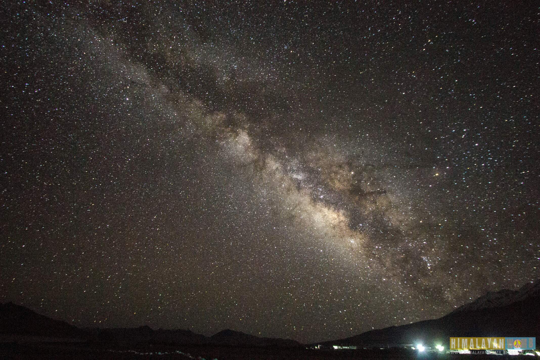 It was last year when I was traveling with my friends to mostly unknown valley "Chumathang". We were left Leh early morning and reached at Pangong Lake around evening time. There was a village, name is "Merak", which is situated above 4400 meters from sea level. We halt there for the night and It was 12 of night and Temperature was almost sub zero but still I was outside to get the perfect shot of mighty Milkyway. And result is in front of you.