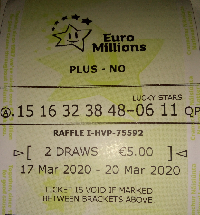 Each week we are purchasing a ticket for the Euro Millions draw. The ticket will run for two draws. The first draw to take place on Tuesday and the second on Friday. The ticket for this week is already running with random selected numbers. (Quick Pick)