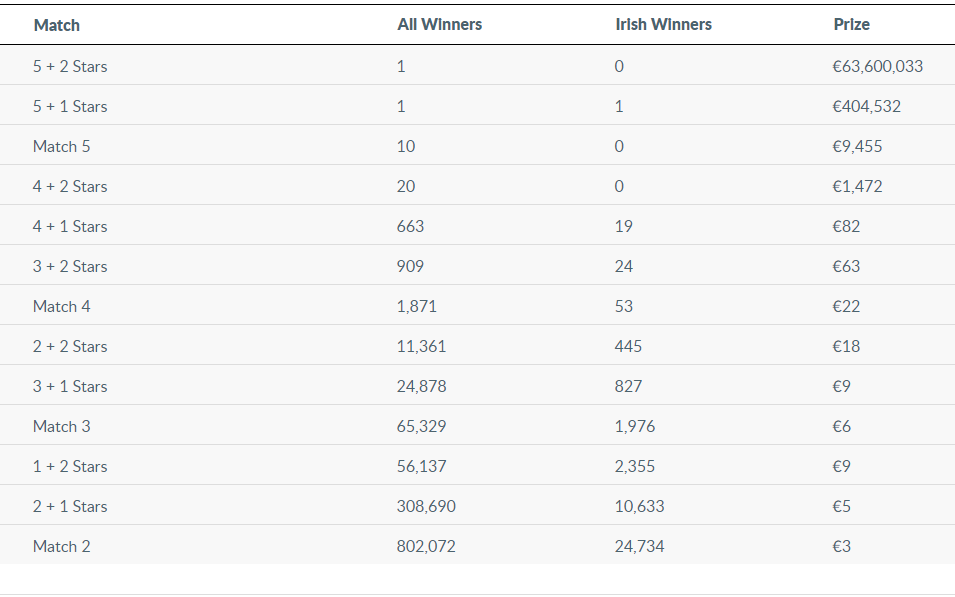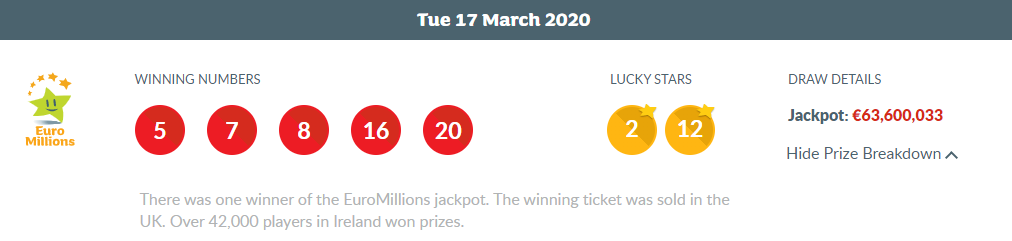 Prize breakdown.