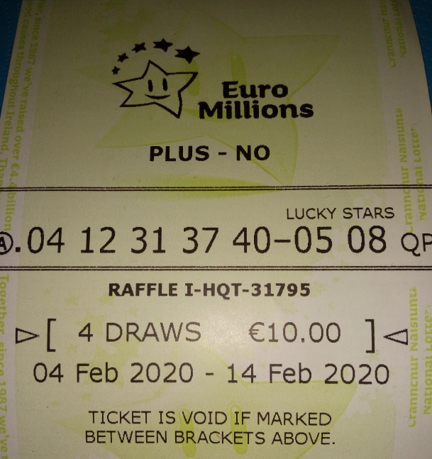 Each week we are purchasing a ticket for the Euro Millions draw. The ticket will run for two draws. The first draw to take place on Tuesday and the second on Friday. The ticket for this week is already running with random selected numbers. (Quick Pick)